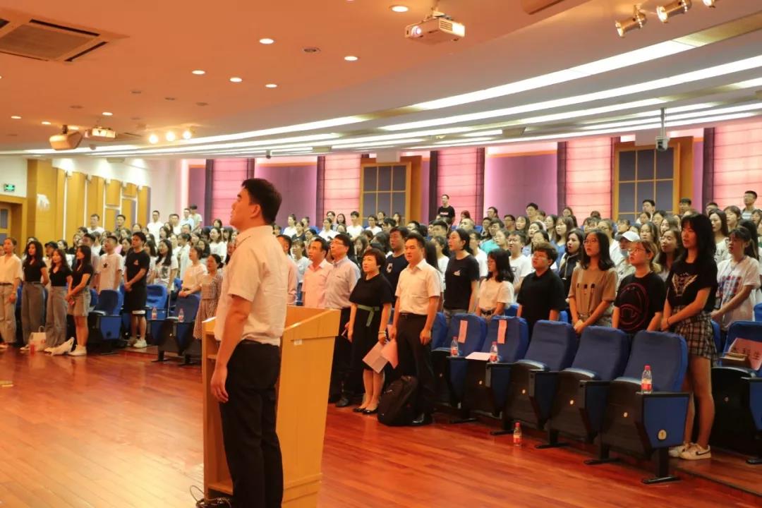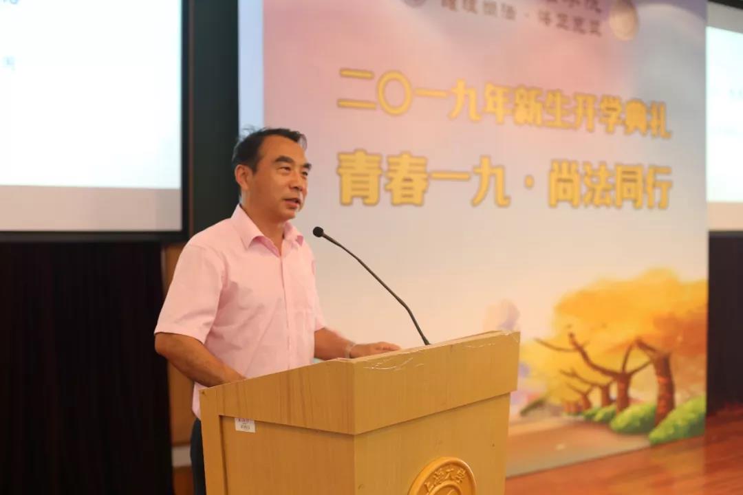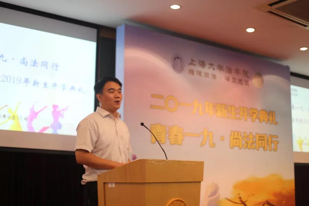 9月15日下午两点半,“青春一九·尚法同行”2019年beat365唯一官方网站新生开学典礼在宝山校区J202方润华讲堂隆重举行,18级本科生和19级研究生共368名同学欢聚一堂。beat365唯一官方网站院长文学国、beat365唯一官方网站党委书记吴仲钢、beat365唯一官方网站副院长李凤章、beat365唯一官方网站副院长芦雪峰、教师代表张开骏、校友代表管理学院2017级博士生李骥出席,开学典礼由beat365唯一官方网站党委副书记王国正主持。