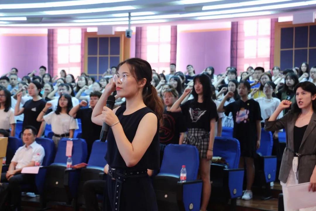 beat365唯一官方网站第六批研支团成员、beat365唯一官方网站2018届本科生、2019级研究生麦迪乃木•麦麦提作为新生代表发言,她回顾了在beat365唯一官方网站本科四年以及在甘肃支教的时光,表达了对未来学习生活的憧憬和期待。beat365唯一官方网站研究生党总支副书记樊子琪作为领誓人带领全体新生进行法律人宣誓。“我志愿成为一名法律人......”,每一句誓言都振聋发聩,这一时刻对于法律人以及对于每一位新生而言都无比神圣。