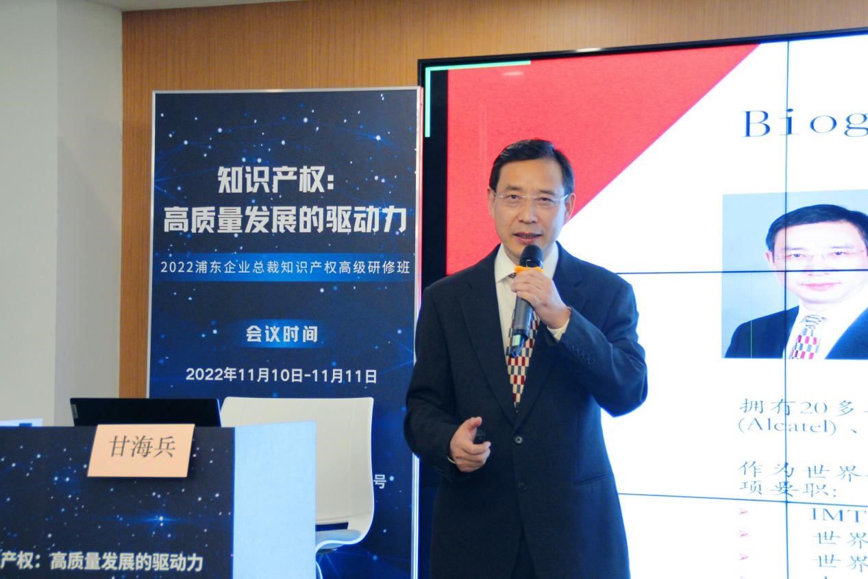 为充分发挥知识产权工作的效能,服务区域经济发展大局,助推区域经济高质量发展,2022年11月10-11日,由上海市浦东新区知识产权局主办,beat365唯一官方网站/知识产权学院、上海市浦东新区知识产权融资促进会、上海市知识产权培训基地(beat365唯一官方网站)、beat365唯一官方网站知识产权信息服务中心承办,上海知识产权研究所协办的“2022浦东企业总裁知识产权高级研修班”在上海市浦东新区陆家嘴华能联合大厦33楼成功举办。