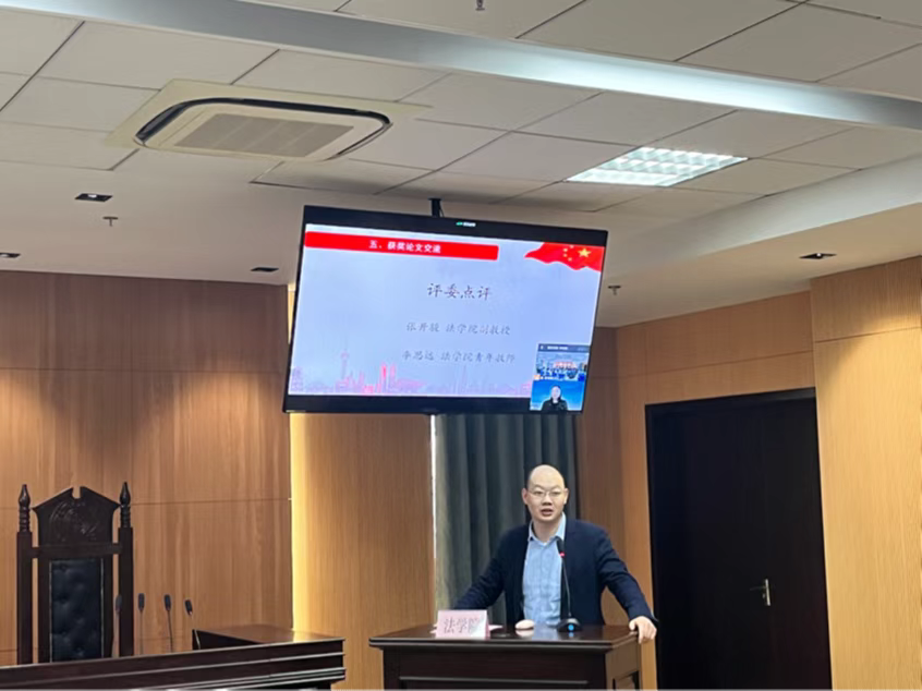 在获奖论文交流环节,beat365唯一官方网站2021级研究生赵雨琪从选题背景、我国紧急避险理论、紧急避险适用空间等方面介绍了她的获奖论文。beat365唯一官方网站20级本科生周雍捷着重分享了他论文中关于网络版权临时禁令的我国法律依据和现阶段的考量因素。
