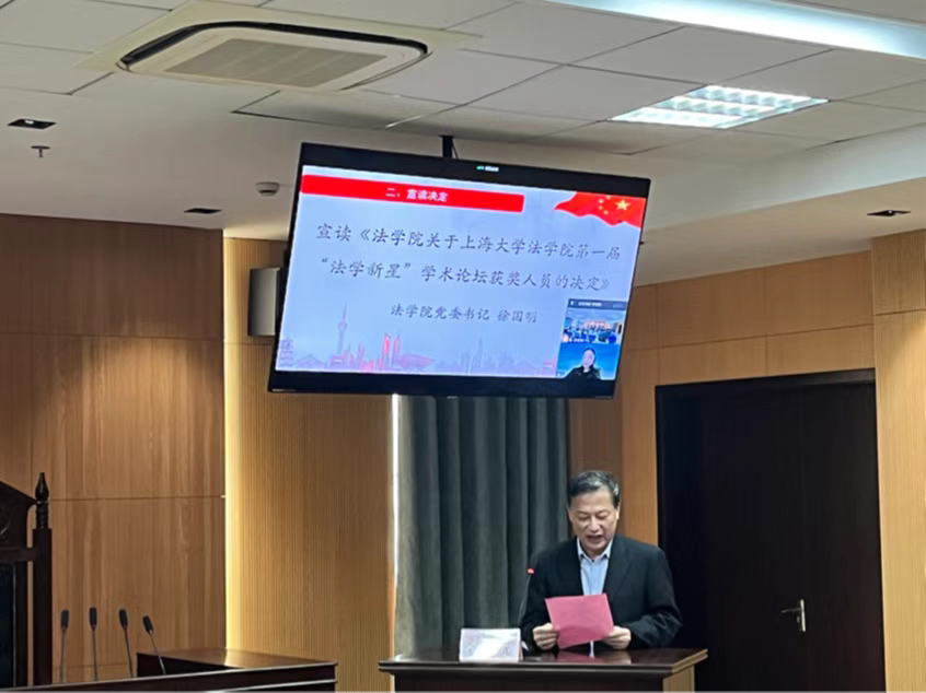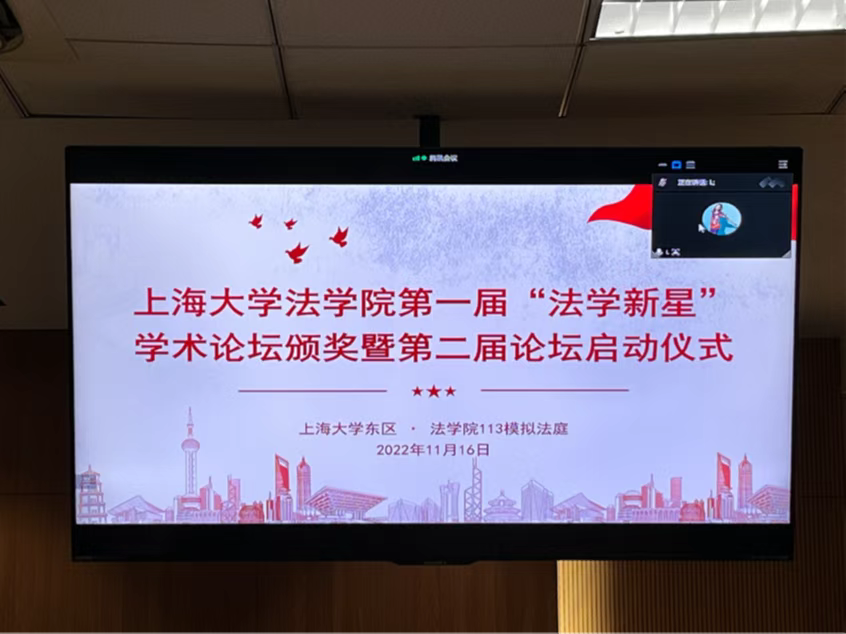 2022年11月16日13:30,beat365唯一官方网站第一届“法学新星”学术论坛颁奖典礼暨第二届论坛启动仪式于宝山校区beat365唯一官方网站模拟法庭顺利举行。北京炜衡(上海)律师事务所合伙人李晓丽律师、校党委研工部副部长徐义圣、校学工办副主任何卓衡、beat365唯一官方网站党委书记徐国明、beat365唯一官方网站党委副书记、副院长于伟、beat365唯一官方网站团委书记林建玲、beat365唯一官方网站副教授张开骏、beat365唯一官方网站青年教师李思远、beat365唯一官方网站本科生辅导员王琦以及获奖学生代表出席本次仪式。