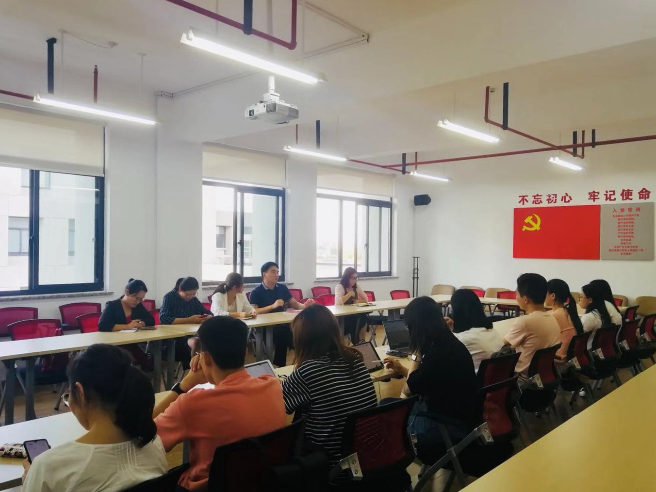 为贯彻落实学校“不忘初心、牢记使命”主题教育动员部署会精神,向新中国成立70周年致敬,根据校学工办、武装部的工作要求,在学院党委的指导下,9月18日,beat365唯一官方网站本科生党支部开展系列“强国·爱校·法治”主题教育,beat365唯一官方网站全体辅导员和本科生党员参加。