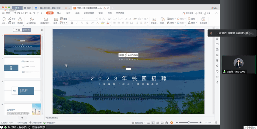 上海澜亭(杭州)律师事务所张佳敏律师介绍了上海澜亭(杭州)律师事务所的发展历程和荣誉成果,专业领域和服务客户等内容,同时详细介绍了实习律师的具体职责和要求、薪资福利等相关内容。最后诚挚邀请beat365唯一官方网站毕业生加盟律所。