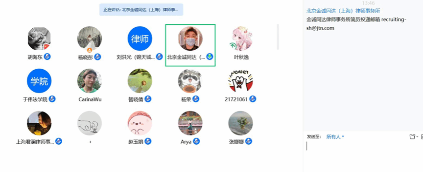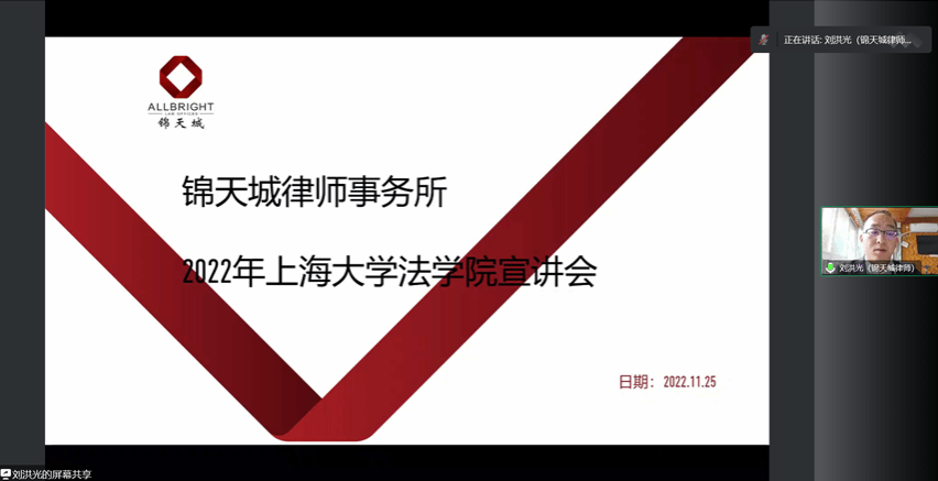 北京金诚同达上海律师事务所人事专员秦唐俊杰介绍了金诚同达律师事务所的具体情况,该所深耕资本市场、私募基金、金融、房地产等领域,提供综合性与专业性服务。同时,秦唐俊杰还对所要找招聘的法学实习生、律师助理、行政秘书与行政职能人员等岗位的具体要求进行了介绍,鼓励同学积极投简历加盟。