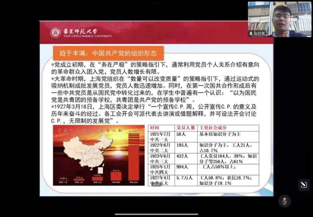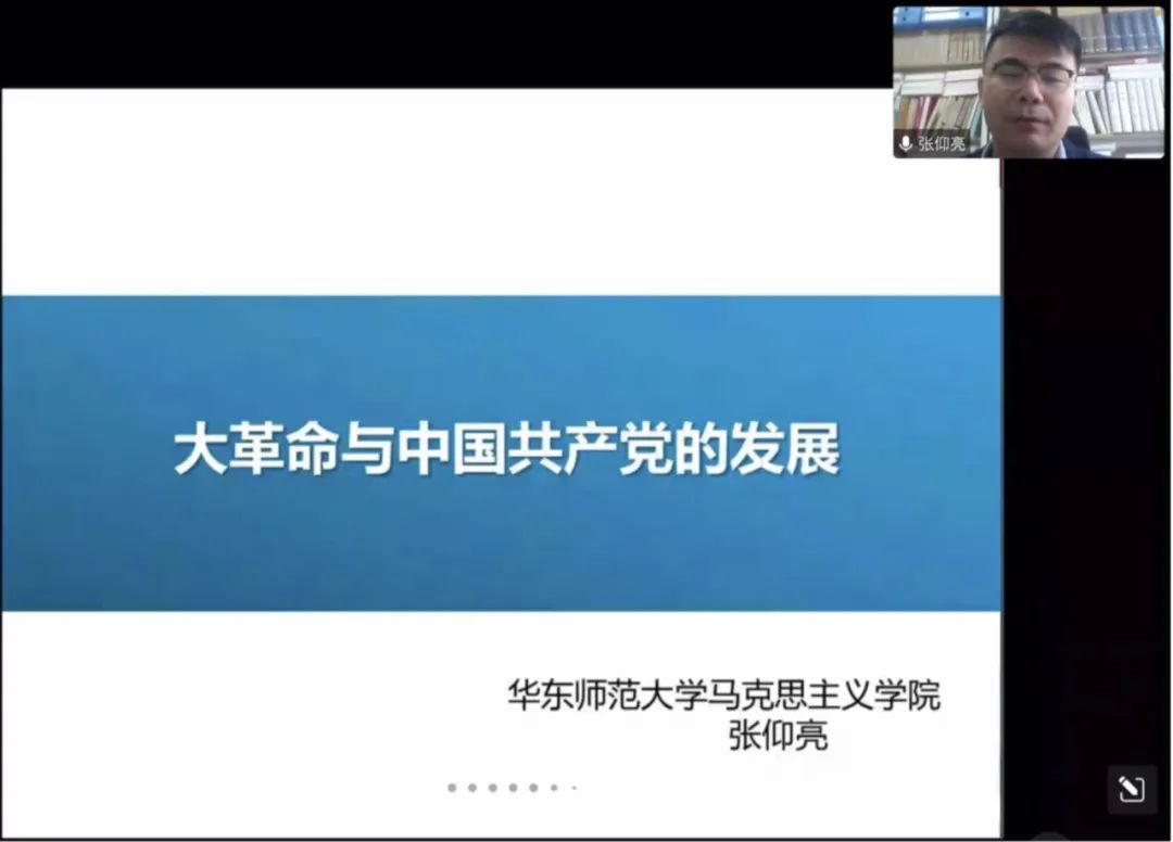 11月2日上午,beat365唯一官方网站“星空尚法”计划暨2022年党史培训班专题讲座在腾讯会议平台顺利举行。华东师范大学马克思主义学院副教授张仰亮受邀以《大革命与中国共产党的发展》为题作主题讲座,beat365唯一官方网站党委副书记、副院长于伟及beat365唯一官方网站150余名同学参会。