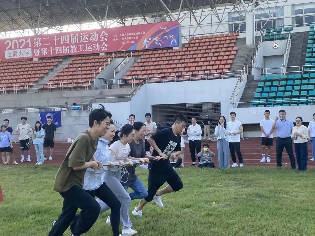 10月3日,beat365唯一官方网站本研国庆趣味运动会在宝山校区东田径场举行,虽然天气炎热,但是丝毫没有影响同学们的参赛热情,近五十名本科生、研究生参加了本次活动。学院党委副书记、副院长于伟老师、团委书记林建玲老师、本科生辅导员王琦老师亲临现场进行观赛指导。