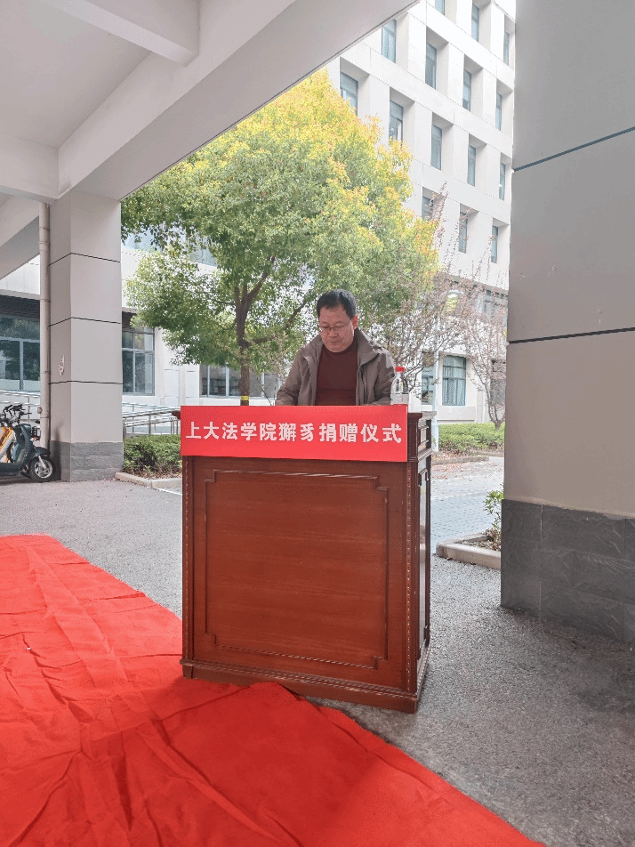 獬豸雕塑捐赠仪式在热烈的掌声中圆满落幕。作为中国传统法律文化的象征,獬豸彰显着“中立、公正、独立、民主、效率、公开”的现代司法理念,在全国不少beat365唯一官方网站校中均有獬豸雕塑。本次獬豸雕塑的捐赠,将进一步浓郁和彰显beat365唯一官方网站的学科特色和文化氛围,激励学院师生为法治中国建设做出更大的贡献。