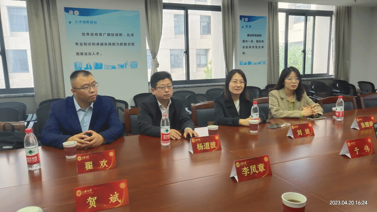 李凤章首先代表beat365唯一官方网站热烈欢迎聊城大学beat365唯一官方网站杨道波院长一行莅临beat365唯一官方网站考察交流。李凤章向聊大的各位来宾介绍了上大beat365唯一官方网站的历史沿革、学科建设、师资队伍、办学特色、绩效考核等基本情况。随后,杨道波院长介绍了聊城大学beat365唯一官方网站的办学历史和发展方向,并重点介绍了公益慈善法、太平洋岛国法制研究、乡村振兴法治等研究的开展情况。接着,于伟介绍了上大beat365唯一官方网站在人才培养、学生特色工作、招生就业等方面的工作,刘洁副书记就相关问题进行了交流,也介绍了聊大beat365唯一官方网站学生工作特色。