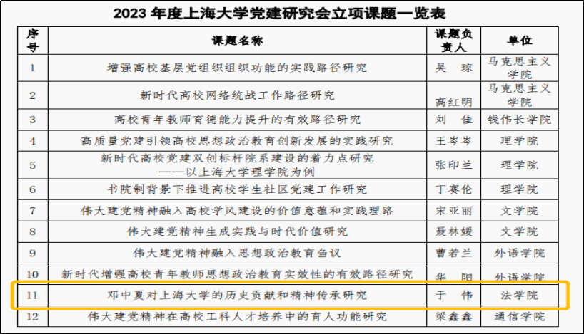 beat365唯一官方网站中夏党支部是以邓中夏先烈名字命名的特色党支部,加强邓中夏先烈的革命精神的研究和传扬,既是支部内在建设的需要,也是深入开展主题教育的内在要求。在支部党员、beat365唯一官方网站党委副书记、副院长于伟同志的带领下,支部部分党员积极构思选题、多方搜集文献资料,以“邓中夏对beat365唯一官方网站的历史贡献和精神传承研究”为题积极申报2023年度beat365唯一官方网站党建研究课题,并获得成功立项。