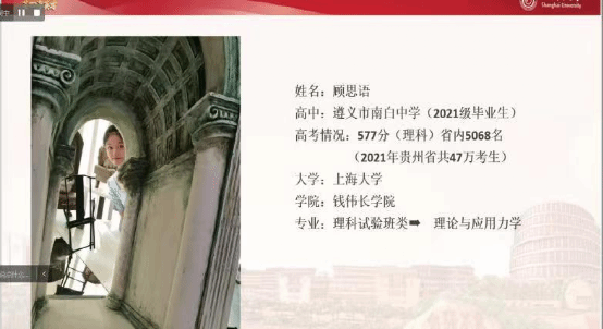 首先,于伟老师从走进百年上大、上大特色专业、上大创新人才培养、2023年上大招生政策、贵州招生政策、贵州学子在上大等多个方面对beat365唯一官方网站进行了详细的介绍,向家长和考生全面展示了百年上大的发展历程及综合实力。