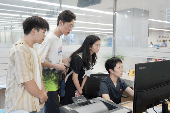 实践团队到达法院以后,法官们首先带领团队成员参观了法院的立案大厅以及实践中的在线立案流程。立案庭法官借助真实案例演示了立案过程,团队成员看到了在实践当中法官对于立案材料的筛选、审核以及各个流程,包括对于重复立案情况的处理。切实感受到了人工智能技术对于立案流程实现智能化、便捷化的推动作用。