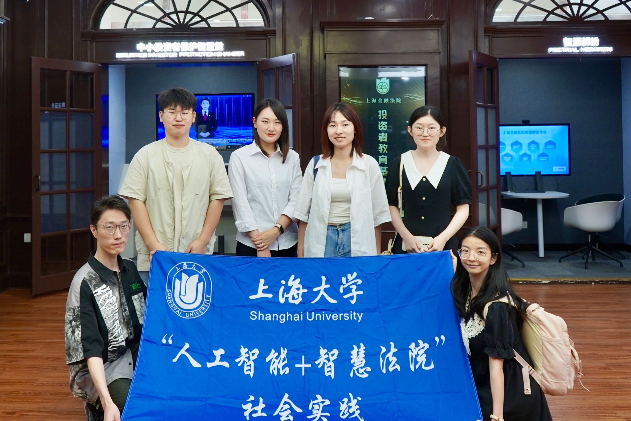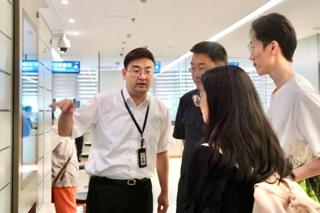 2023年7月5日上午,实践团成员前往上海金融法院开展实地调研,上海金融法院立案庭副庭长孙雪梅、技术人员孙文霞、司法警察毛永恒等一行热情接待了实践团。