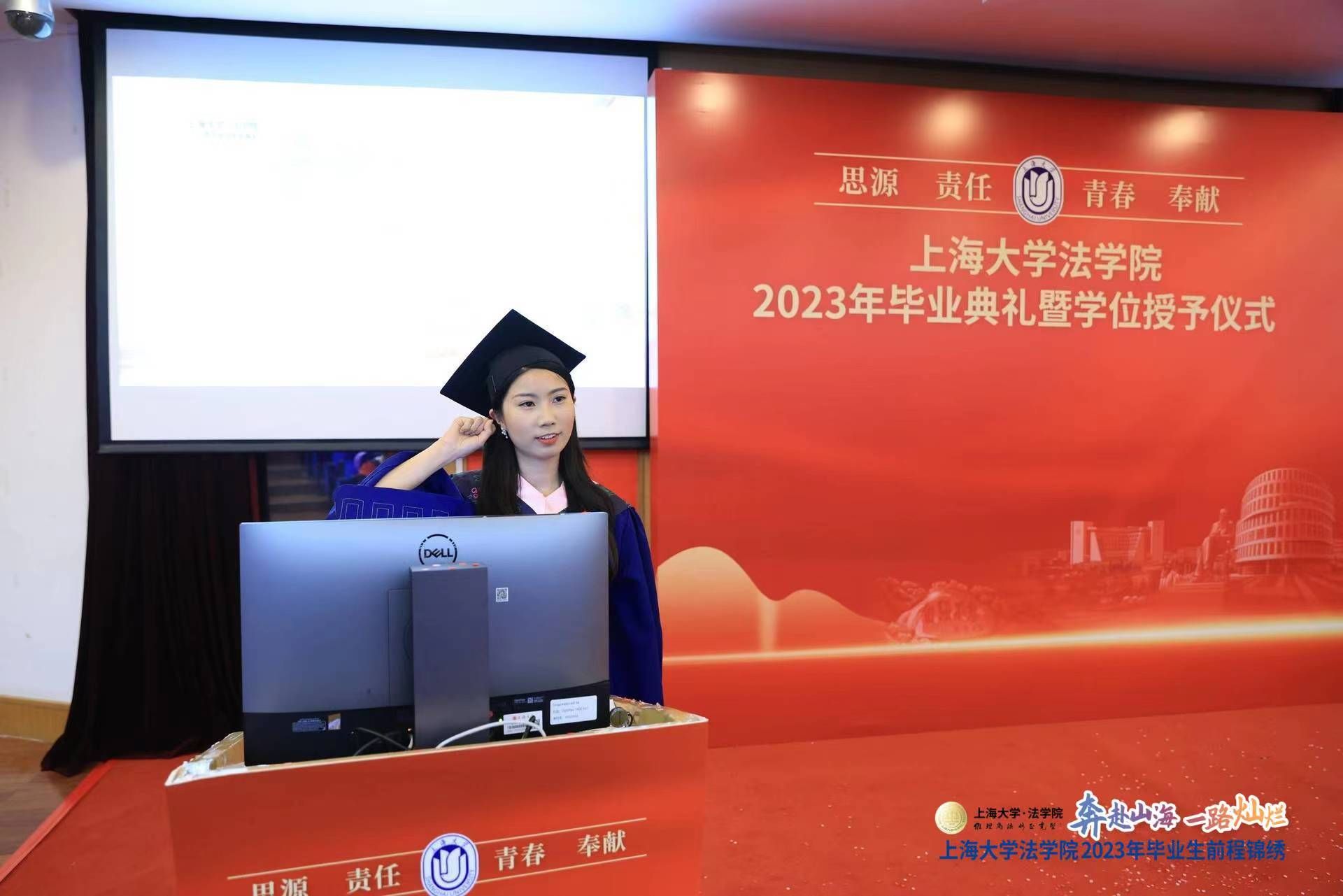 在毕业典礼暨学位授予仪式上举行毕业生法律人宣誓仪式是上大beat365唯一官方网站的一贯传统,在2023届毕业生法律人宣誓仪式环节,上海市优秀毕业生龚芮带领全体毕业生再一次重温法律人誓言,表达了毕业生们坚守法律人理想的坚定信念。