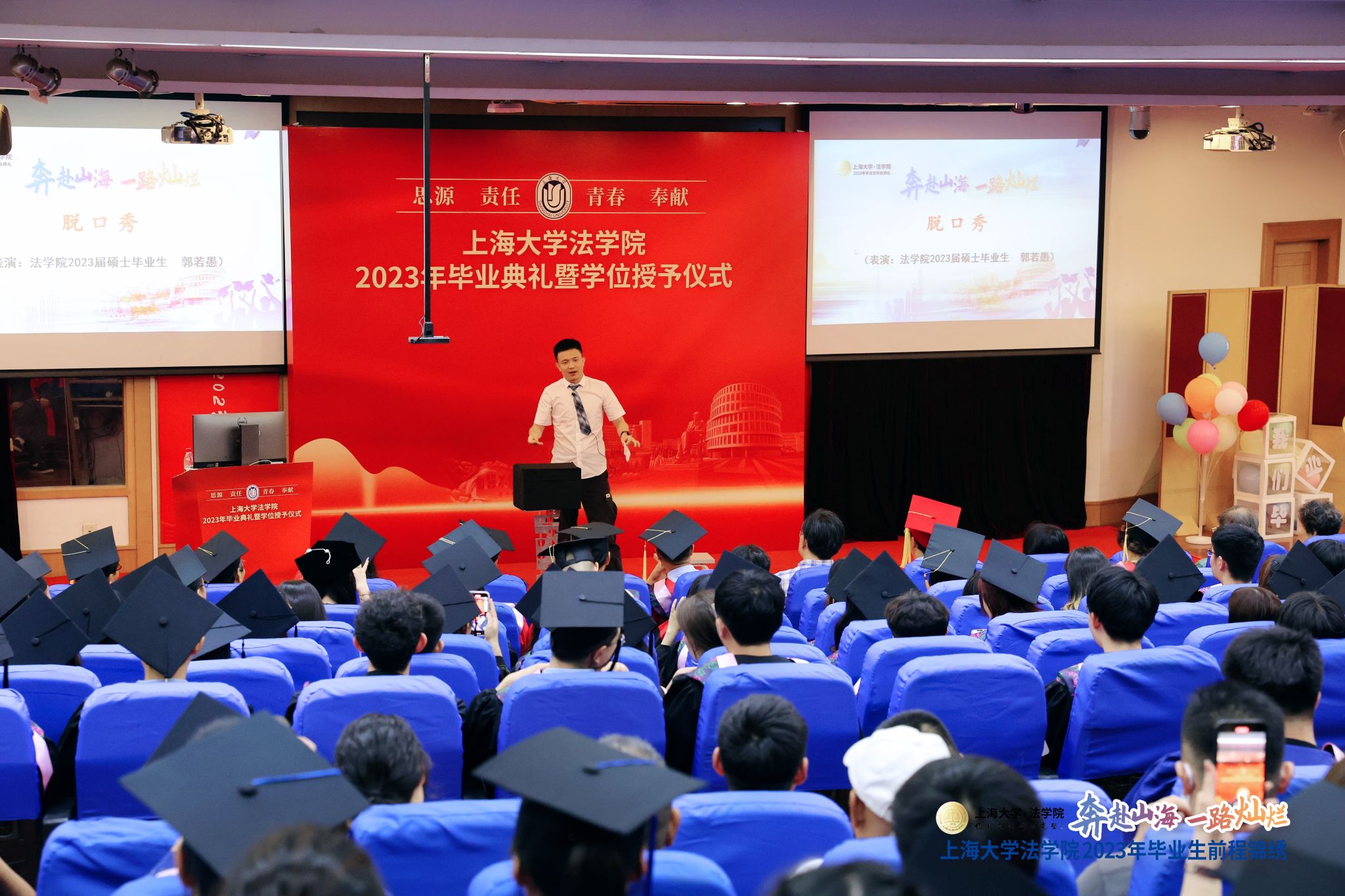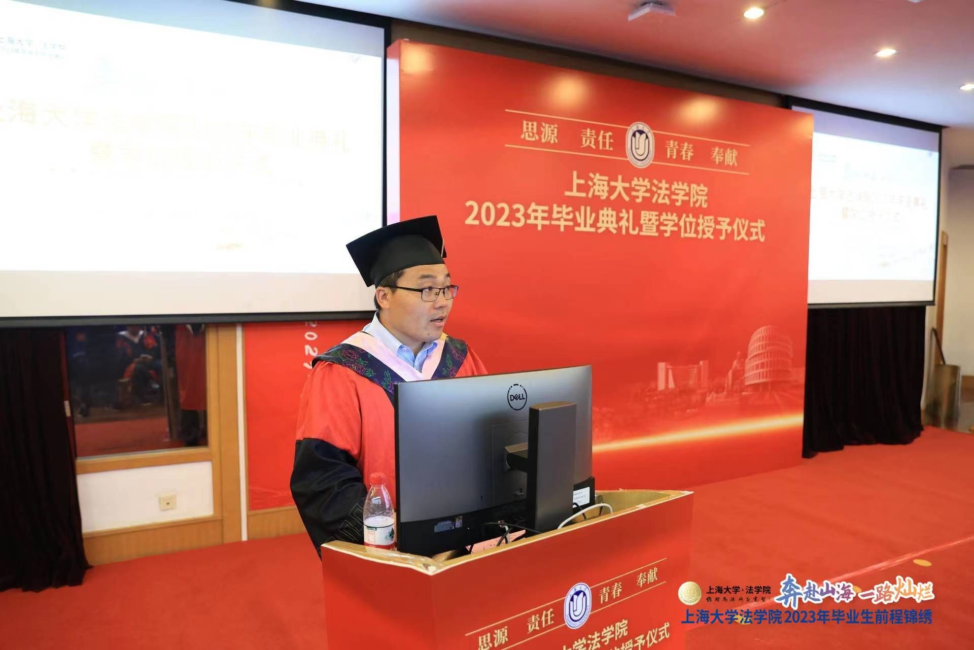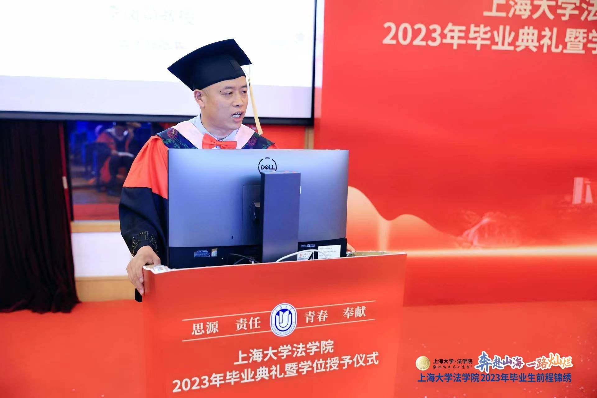 2023年7月2日上午,beat365唯一官方网站2023年毕业典礼暨学位授予仪式在宝山校区J202方润华讲堂隆重举行!校党委副书记、纪委书记段勇,beat365唯一官方网站院长李凤章、教师代表文学国教授、袁真富教授等出席,beat365唯一官方网站2023届本研毕业生、2022届部分本研毕业生、学生家长和学院老师等400余人共赴毕业之约。毕业典礼由beat365唯一官方网站党委副书记于伟主持,beat365唯一官方网站2023年硕士毕业生龚芮担任司仪。
