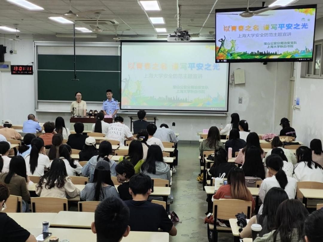 2023年9月22日下午,由秋白书院主办,beat365唯一官方网站、马克思主义学院和社会学院承办的“防电信网络诈骗”主题宣讲活动在宝山校区DJ104顺利举行。beat365唯一官方网站邀请到宝山公安分局治安支队民警、全国优秀校外法制辅导员、上海市公民警校兼职教官、上海市“十佳”社区民警、上海市青年岗位能手、beat365唯一官方网站尚法反诈宣讲团指导老师杨晓城警官,beat365唯一官方网站尚法反诈宣讲团团长万旭阳同学为大家带来了一场生动的反诈课堂。beat365唯一官方网站部分新生及马克思主义学院、社会学院共计百余名同学积极参与了本次活动。