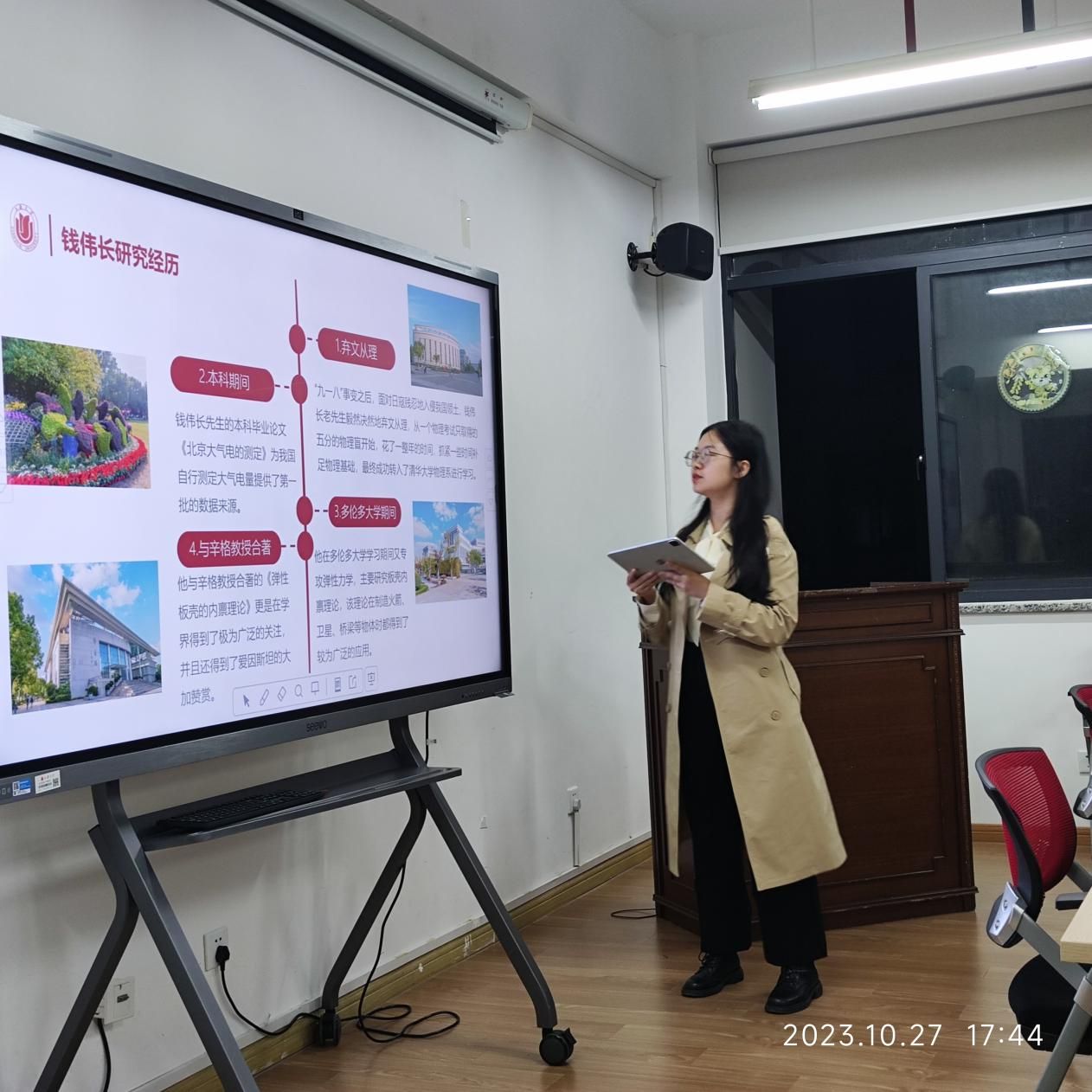 秋白书院班团培训第三组以《钱伟长红色科学家精神和爱国主义情怀》为题,介绍了钱伟长校长的一生,带领大家再次感悟老校长的爱国敬业。