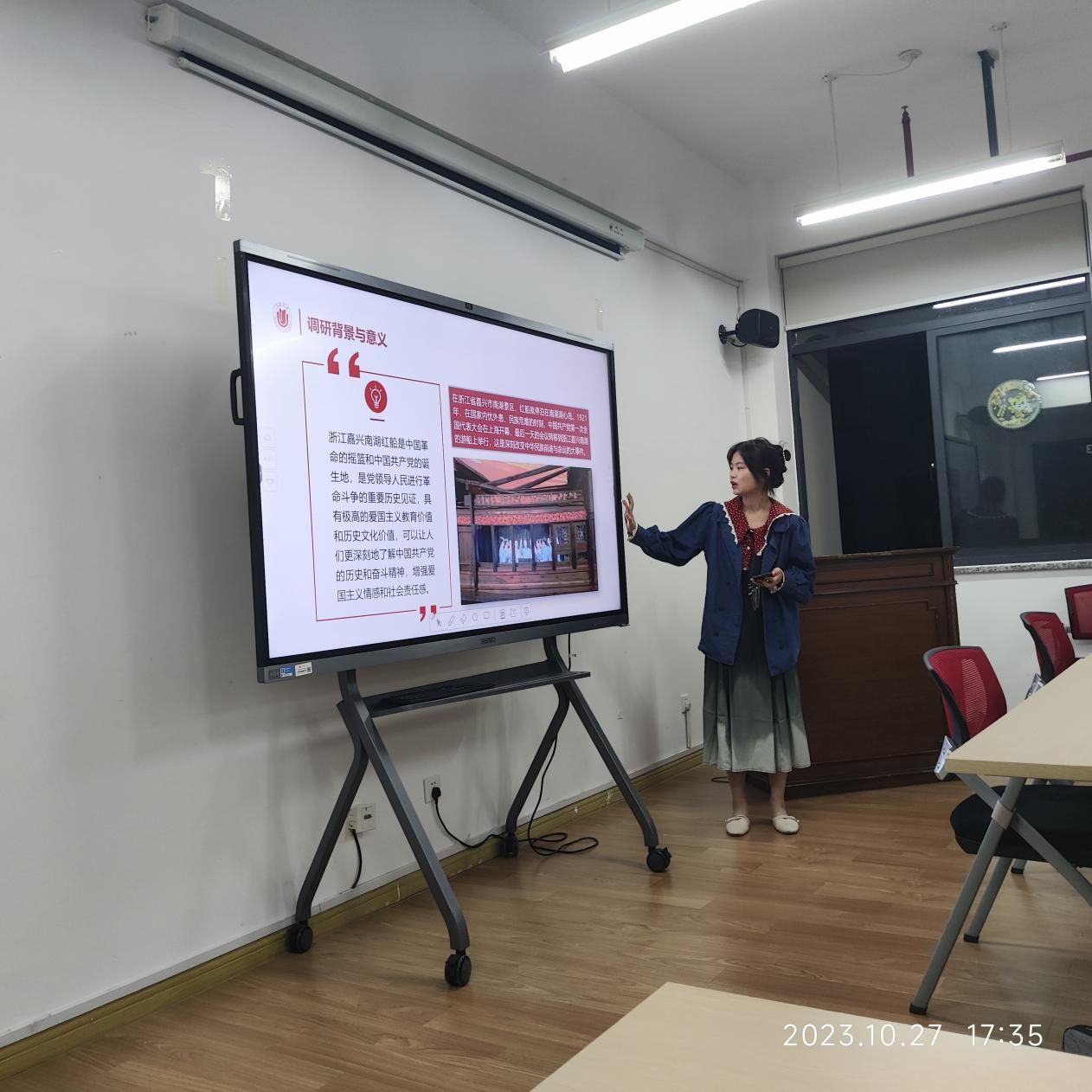 秋白书院班团培训第二组以《访南湖红船,品百年风华——论参观红色景区与新时代中国特色社会主义政治建设的关系》为主题,调研了参观南湖红色景区游客的参观原因,鼓励大家要从历史中汲取智慧和力量,坚定中国特色社会主义道路自信、理论自信、制度自信、文化自信,为推进中国特色社会主义事业贡献自己的力量。