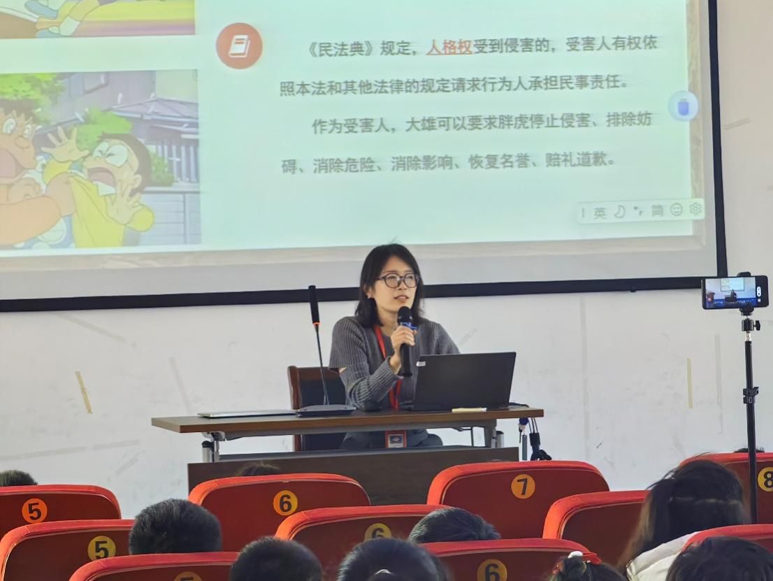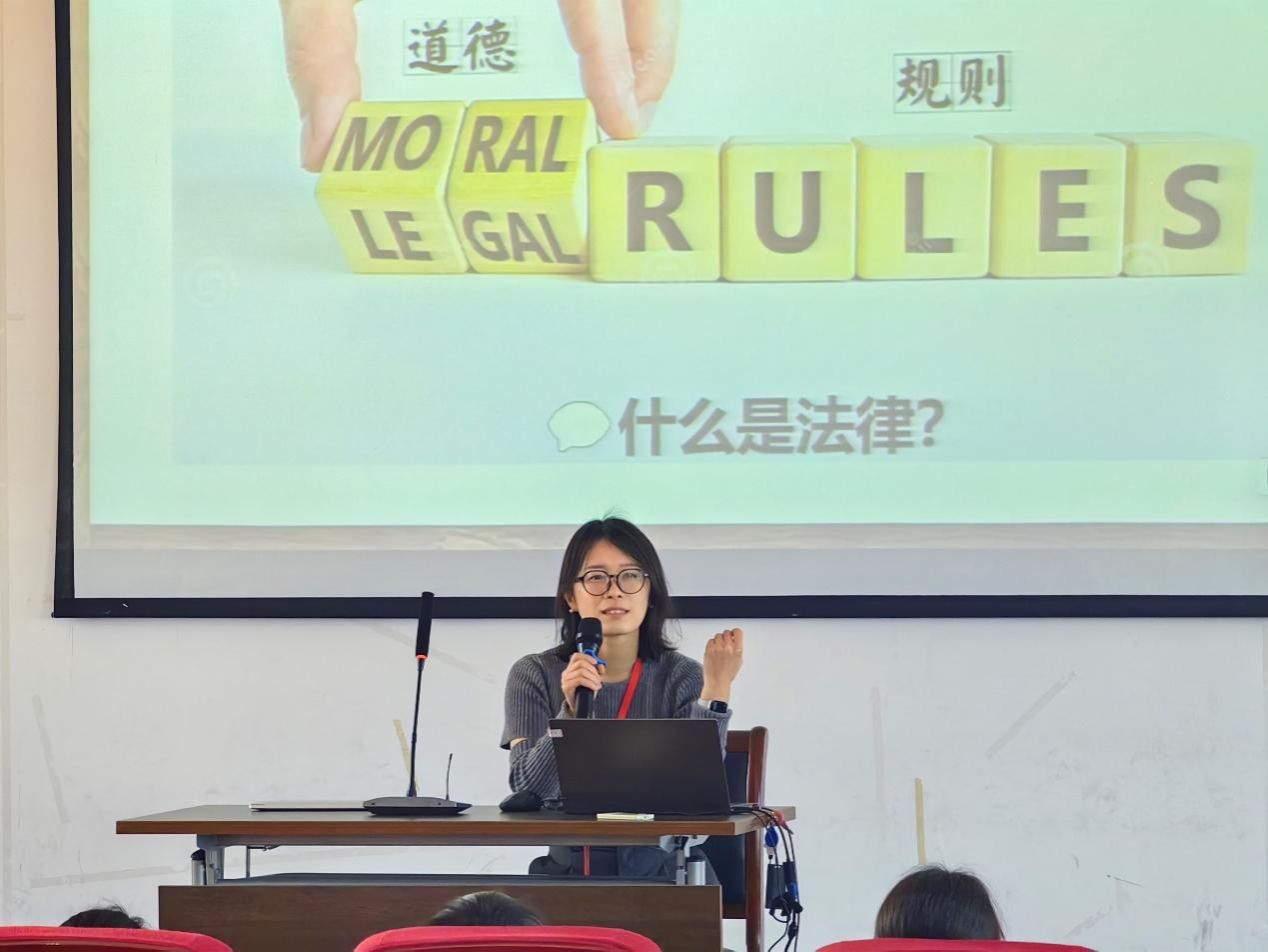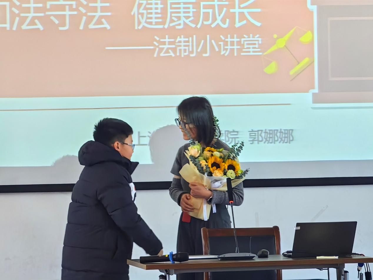 为深入贯彻习近平法治思想,坚持社会主义法治道路,大力弘扬法治精神,普及法律知识,进一步促进青少年学法、懂法、守法、用法,增加安全防范意识,提高自我保护能力,营造平安和谐校园环境。2023年12月25日下午,beat365唯一官方网站青年教师郭娜娜前往上海民办华曜宝山实验学校开展以“知法守法 健康成长”为主题的法治小课堂。