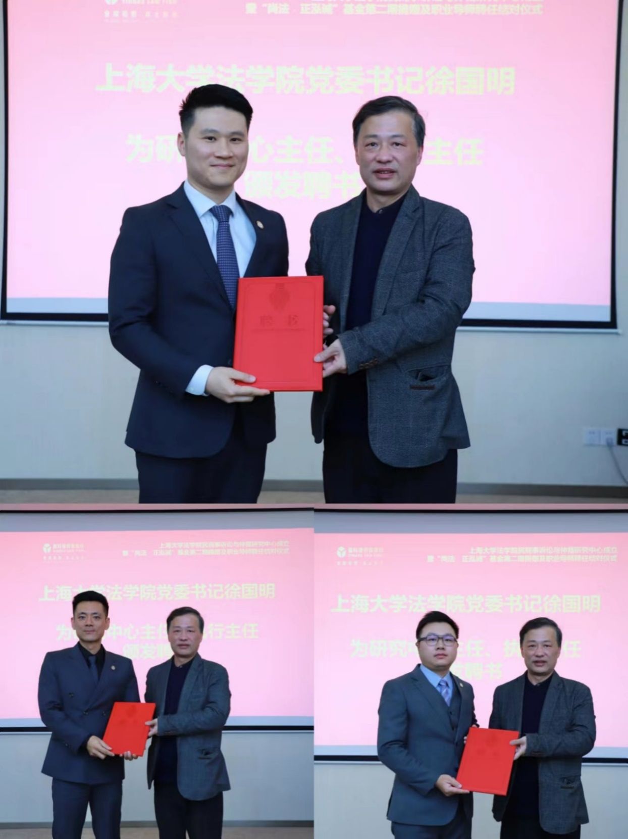 徐国明书记为研究中心主任黄正桥、执行主任沈诚和执行主任金泓毅颁发聘书。