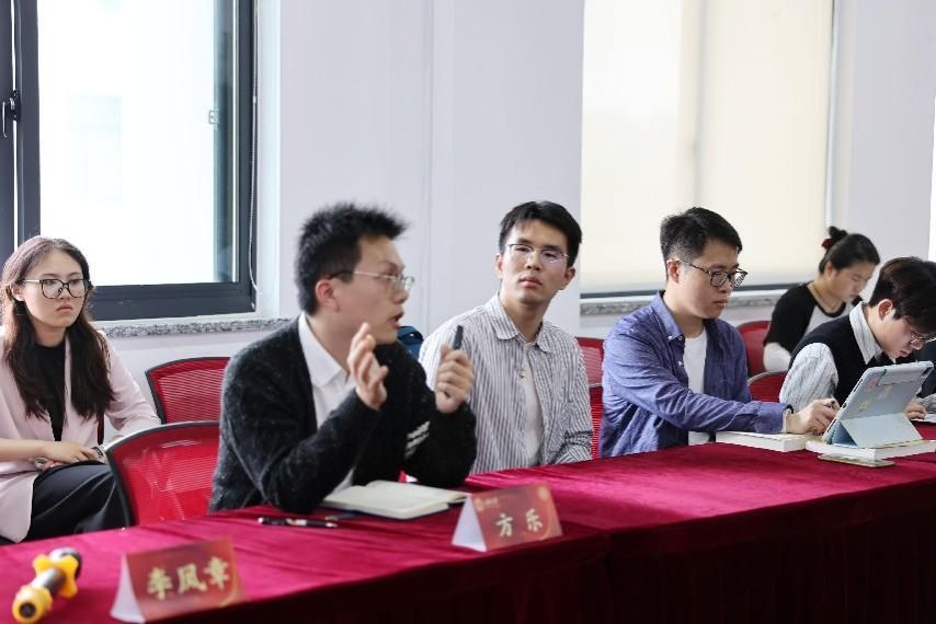 方乐老师从团委工作的角度,对创新创业和科研培养两个方面进行了分享。在创新创业部分,方乐老师认为,在以竞赛为导向的标准下,想要获得青睐的重中之重在于选题和培育,选题需要具有创新性,可立足于专业,结合热点焦点和特色优势选择具有可行性的主题。方乐老师以中国政法大学、华东政法大学、西南政法大学等高校2023年的创新项目立项情况为例,分析了当下法学类项目的创新方向。相较于当下热门的数字法学,方乐老师更倾向于以实定法为导向,注重对传统法学教育的研究。在科研培育部分,方乐老师与在场的同学们分享了法学选题的方法以及论文结构的设计,同学们受益匪浅。