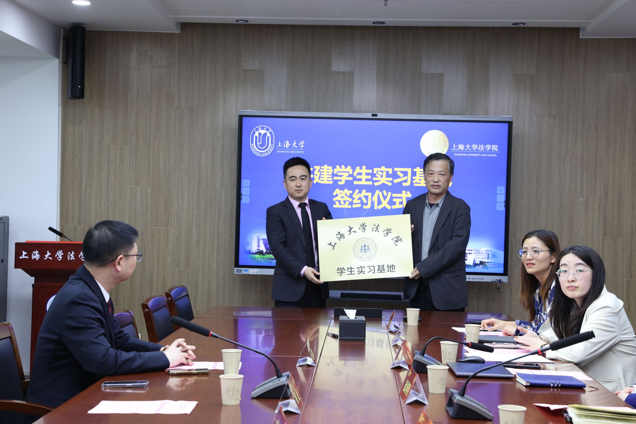 在beat365唯一官方网站学生实习基地授牌仪式中,徐国明代表beat365唯一官方网站向北京市隆安律师事务所上海分所授予“beat365唯一官方网站学生实习基地”铜牌。