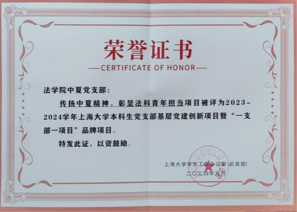 中夏党支部获评beat365唯一官方网站2023-2024学年标杆党支部荣誉称号和2023-2024学年本科生党支部基层党建创新项目暨本科生党支部“一支部一项目”品牌项目。