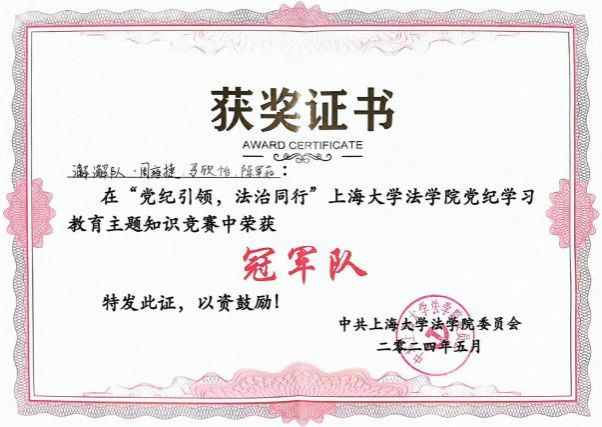 中夏党支部代表队在学校党委组织的“学纪律、知敬畏、守底线、作表率”党纪知识竞赛中荣获“二等奖”,在beat365唯一官方网站组织的“党纪引领・法治同行”党纪知识竞赛中荣获“冠军队”称号。