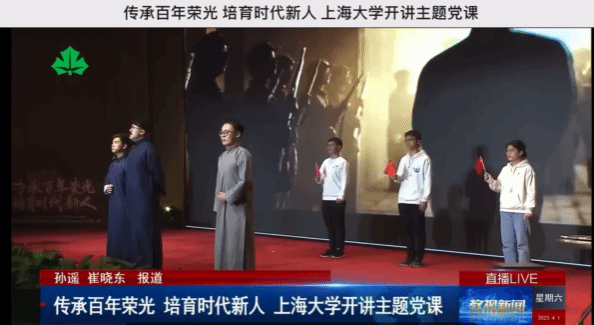 《上大蓝图 百年擘画》是由中夏党支部、秋白党支部和守常党支部三个支部联合出演的情景党课,通过情景再现的形式,生动地描绘了邓中夏、瞿秋白和李大钊先辈们共叙情谊、共绘蓝图、共谋发展的壮阔场面。这一活动不仅在校园内引起了强烈反响,还被多家媒体转载报道,有效扩大了beat365唯一官方网站三个特色支部的辐射影响力。