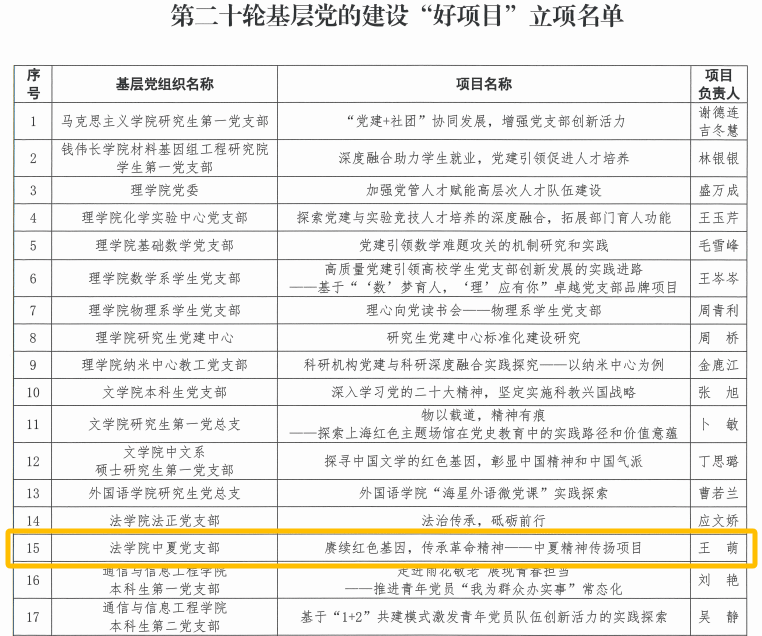 中夏党支部秉承中夏精神,积极开展中夏精神传承项目,成功立项beat365唯一官方网站第二十轮基层党的建设“好项目”和beat365唯一官方网站2023及2024年度本科生党支部基层党建创新项目暨“一支部一项目”。通过深化项目内涵、加强实践交流、强化党员培训以及建立跟踪评估机制,彰显法科青年的担当,培养具有专业素养和社会责任感的法治建设者,为推动法治中国建设贡献青春力量。