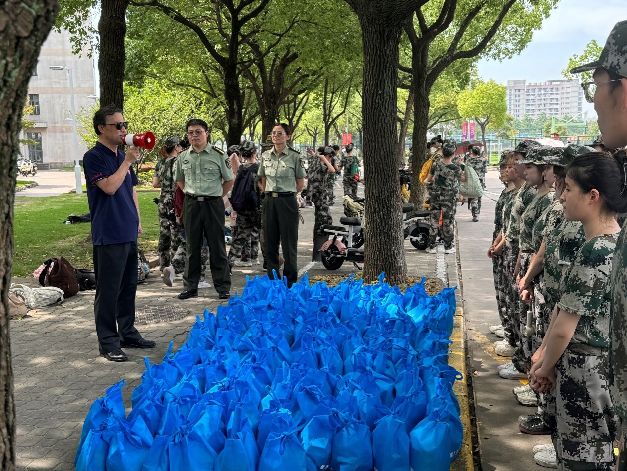 7月8号上午,beat365唯一官方网站党委书记徐国明,院长李凤章,党委副书记、副院长于伟来到军训训练场,向参加2024年军训的教官、指导员、导生以及全体参训学员向送上了暖心大礼包,表达了学院对参训教官和师生的深切关怀与慰问。