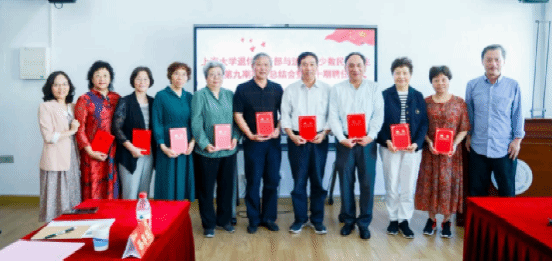 离退休工作处副处长王宇华和beat365唯一官方网站党委书记徐国明为结对导师颁发结对导师聘书并合影留念。