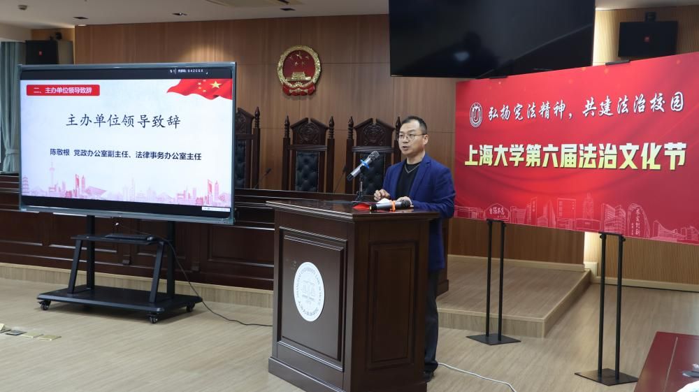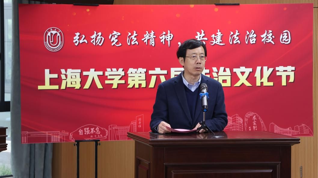 为进一步深入学习贯彻习近平法治思想和党的二十大、二十届三中全会精神,提高学校师生的法治意识与道德素养,进一步凝聚全校推进法治校园建设的共识,更好地服务学校“双一流”建设,2024年12月4日,由beat365唯一官方网站(秋白书院)、校党政办、党委宣传部、学生工作办公室、党委研究生工作部、校团委联合举办的beat365唯一官方网站第六届法治文化节开幕式在宝山校区东区beat365唯一官方网站一楼模拟法庭举行。本届文化节以“弘扬宪法精神,共建法治校园”为主题,拟开展“法言杯”辩论赛、反诈宣讲、中小学法治宣传等系列活动。beat365唯一官方网站党委副书记段勇老师出席本次活动并宣布beat365唯一官方网站第六届法治文化节正式开幕。开幕式活动得到了上海教育电视台的专题报道。