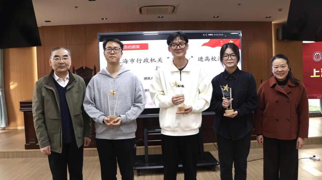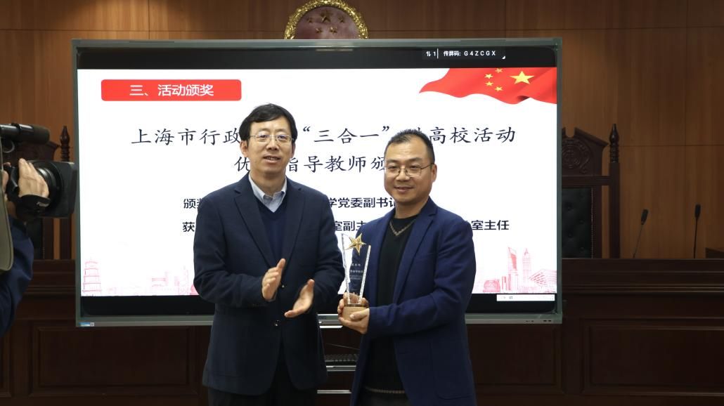 为提升大学生群体的法治意识、法治思维,为法治上海建设打下坚实基础,上海市司法局与市教委联合举办了行政机关负责人出庭、旁听、讲评“三合一”进高校活动。beat365唯一官方网站在校法务办的指导帮助下发动组织学院学生积极参加征文活动,取得了突出的工作成效和育人实效。继2023年beat365唯一官方网站获得优秀组织奖后,2024年陈敬根老师荣获由市司法局、市教委颁发的“三合一”进高校活动优秀指导教师奖,beat365唯一官方网站3名同学在“三合一“征文活动中获奖。beat365唯一官方网站党委副书记段勇老师为陈敬根老师颁发优秀指导教师奖杯,beat365唯一官方网站工会常务副主席顾莹老师和党委宣传部副部长、文明办主任何金伟老师为beat365唯一官方网站李圣昊、张煜轩和周丽讯同学颁发征文活动奖杯。