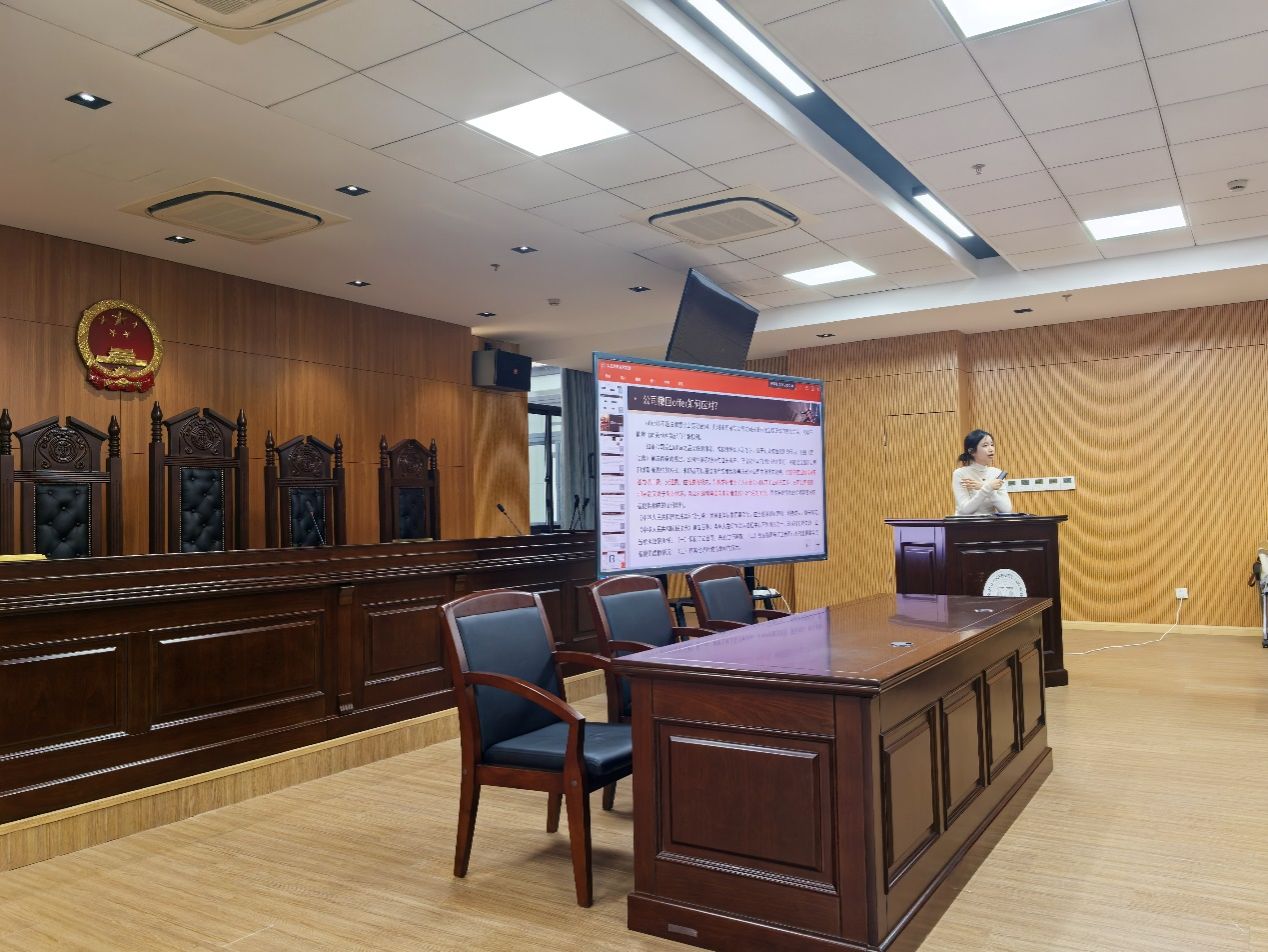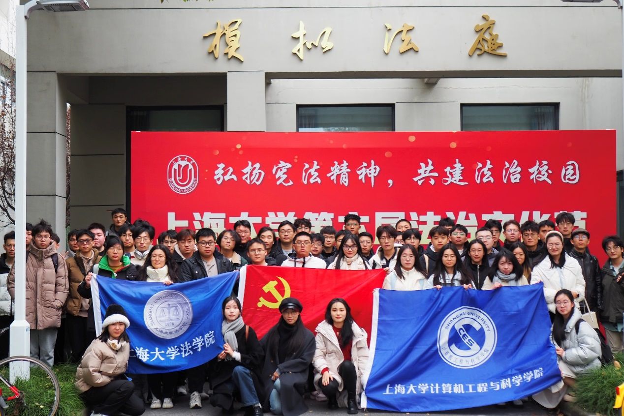 beat365唯一官方网站与计算机学院学子在模拟法庭前合影留念
