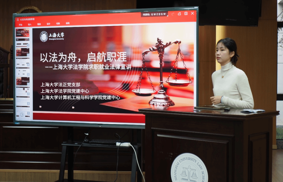为进一步提升学生的法律意识,助力学生在求职路上行稳致远,有效防范和应对求职过程中可能遭遇的各类权益侵害风险,beat365唯一官方网站研究生党建中心联合计算机工程与科学学院党建中心于2024年12月13日上午,在beat365唯一官方网站模拟法庭举办了“党建引领,指点迷津——求职就业法律宣讲”活动,邀请了beat365唯一官方网站法正党支部支部书记徐炜为宣讲活动的主讲人,beat365唯一官方网站研究生党建中心主任朱佳老师、计算机学院研究生党建中心主任郑丽玫老师参加活动。本次活动由两学院研究生党建中心共同举办,旨在以党建为引领,为学生提供精准实用的求职就业法律知识,使其在求职中能够有效维护自身权益,应对潜在法律问题。近80位学生聆听了本次讲座。