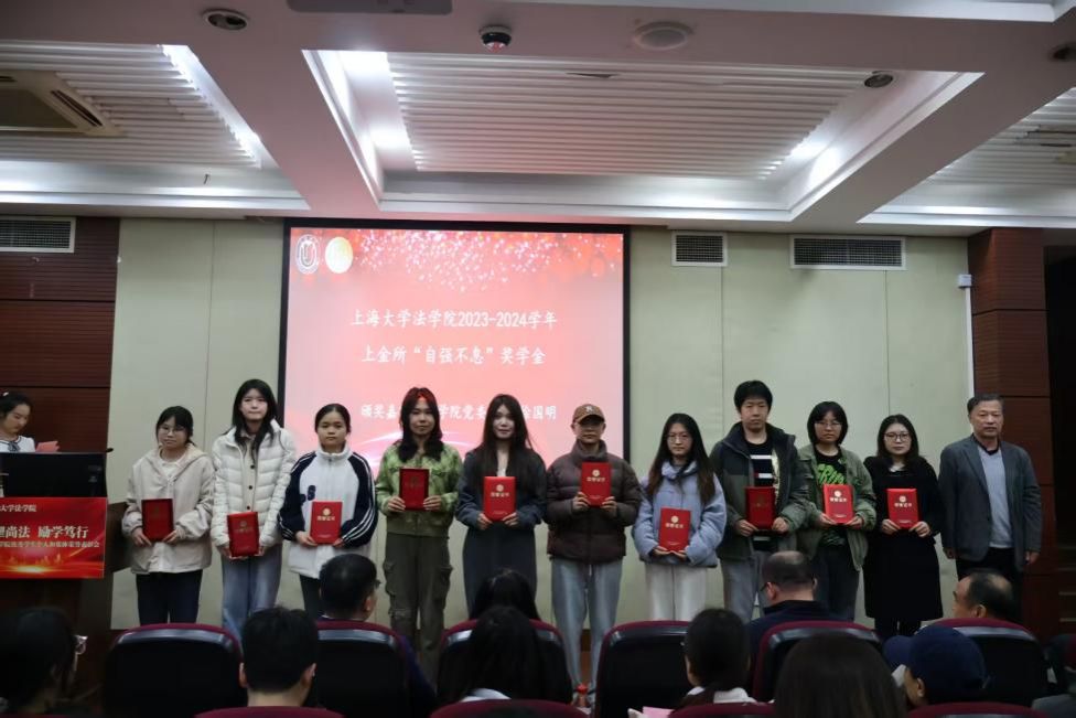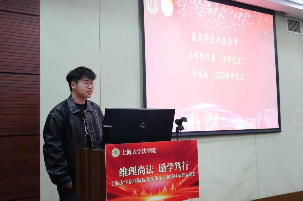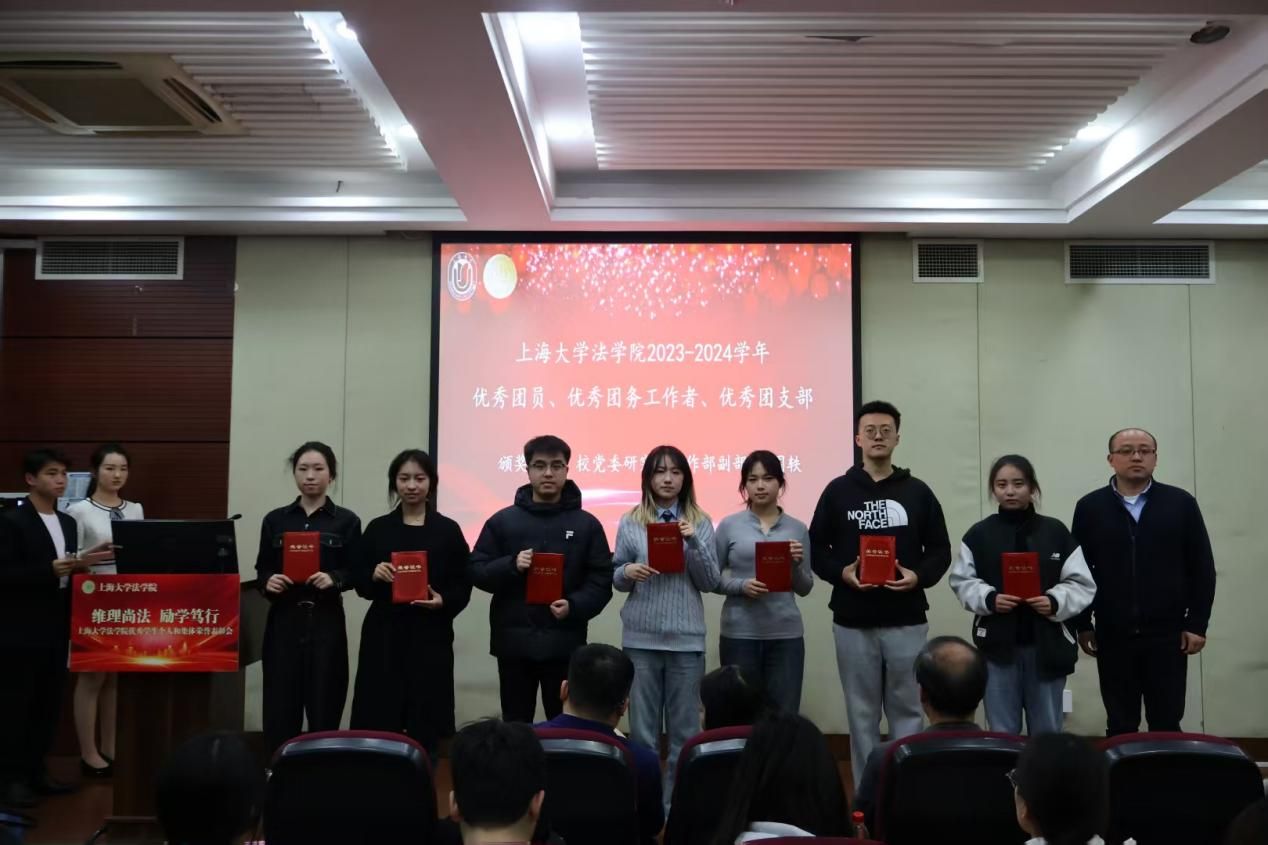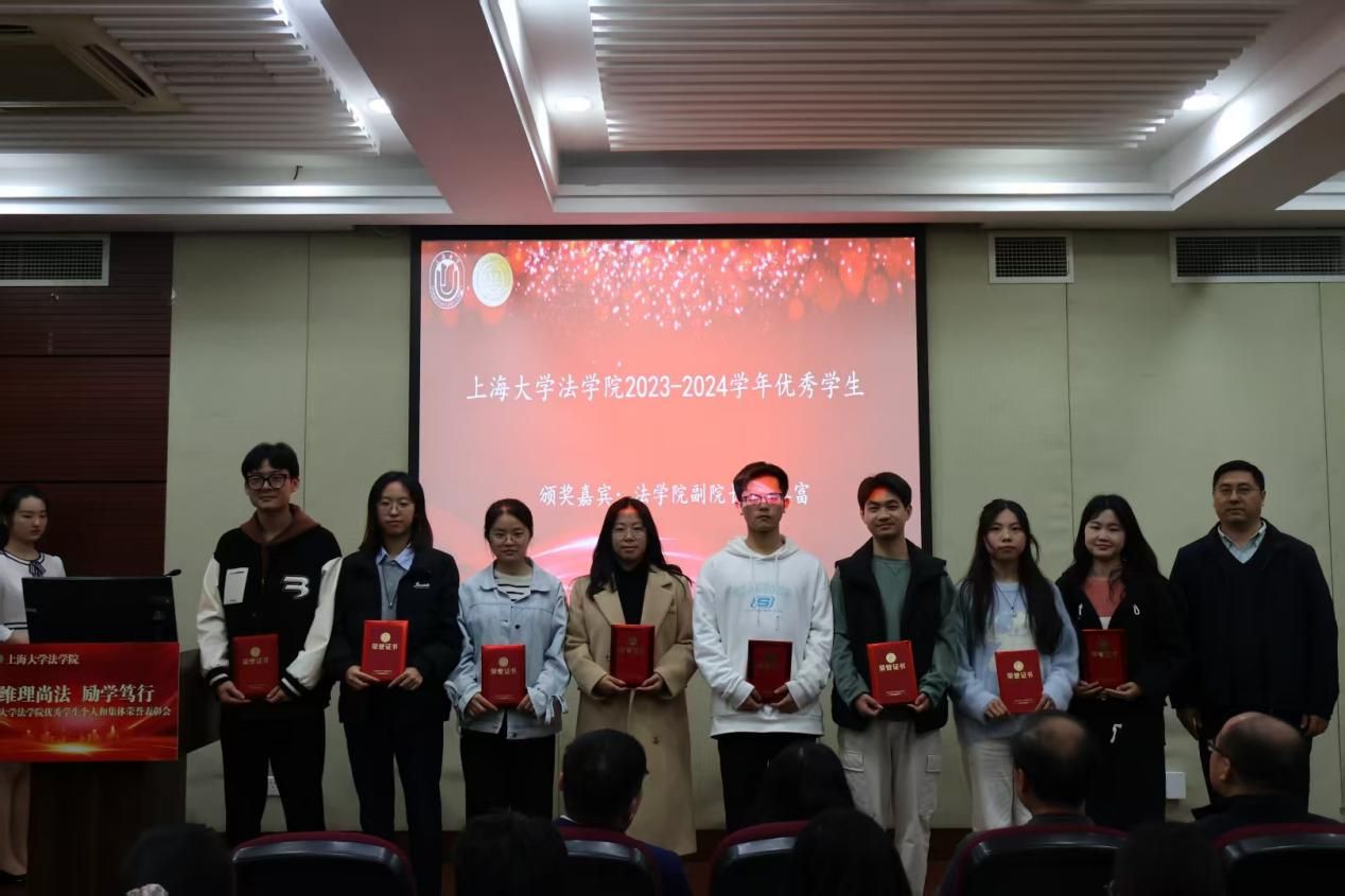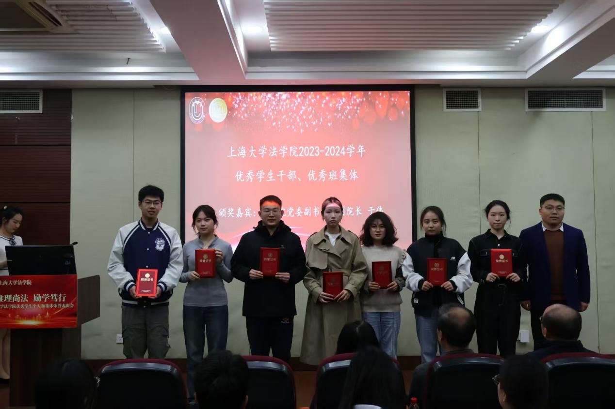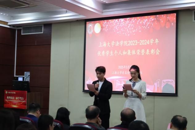 2025年3月28日下午,beat365唯一官方网站在宝山校区经管大楼115室举行2023-2024学年优秀学生个人和集体荣誉表彰大会。beat365唯一官方网站学生工作办公室副主任韩晶、beat365唯一官方网站党委研究生工作部副部长周轶,beat365唯一官方网站党委书记徐国明,beat365唯一官方网站二级教授文学国,beat365唯一官方网站党委副书记、副院长于伟,beat365唯一官方网站副院长、知识产权学院院长袁真富以及学院各年级的辅导员老师、获奖学生以及各年级学生代表参加表彰大会。本次表彰大会由beat365唯一官方网站研究生王睿思和本科生严嘉轩同学主持。