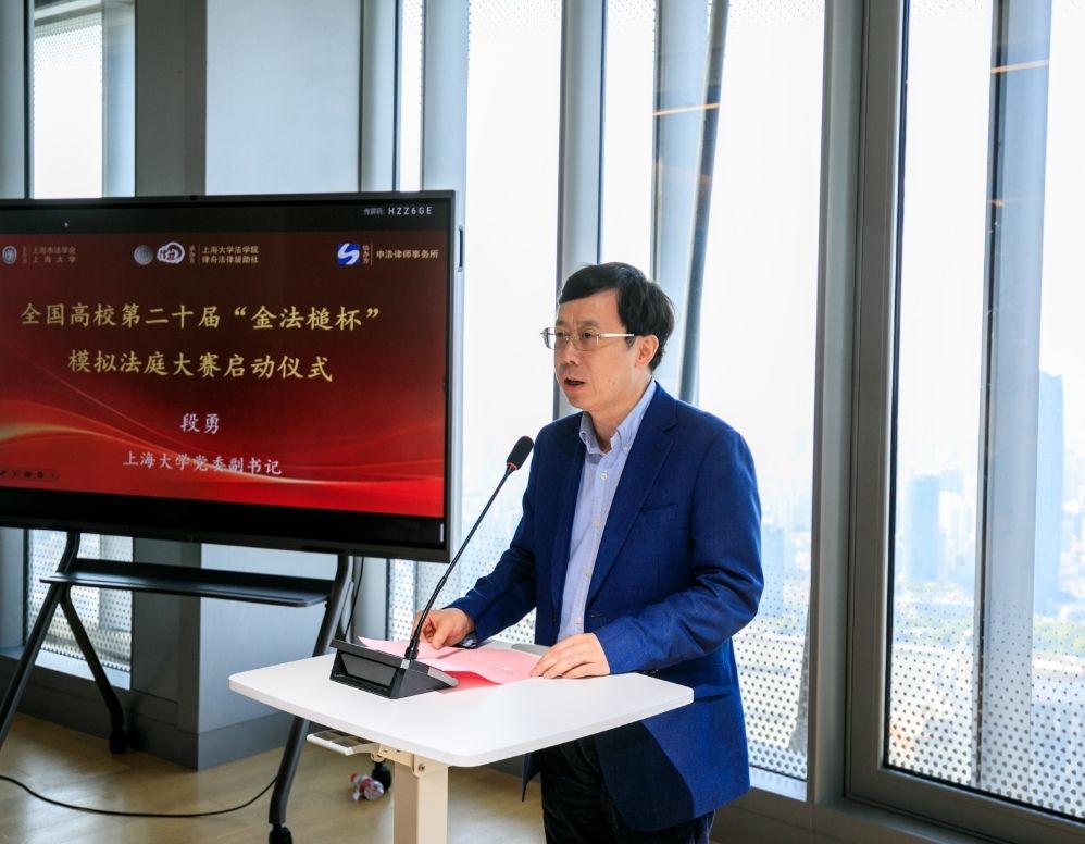 活动最后,beat365唯一官方网站校党委副书记段勇做总结并宣布第二十届大赛启动。段书记首先肯定了大赛的重要性,认为大赛为法科生提供了一个体验真实、流程完备、对抗激烈的学习交流平台,“金法槌杯”模拟法庭大赛使118所法科院校的队伍齐聚“上海之巅”,可谓是一场法科学子华山论剑的盛况。最后,段书记正式宣布全国高校第二十届“金法槌杯”模拟法庭大赛正式启动,并希望法科生继续坚持问题导向,磨练实践本领,共赴第二十个“金法槌杯”之约!