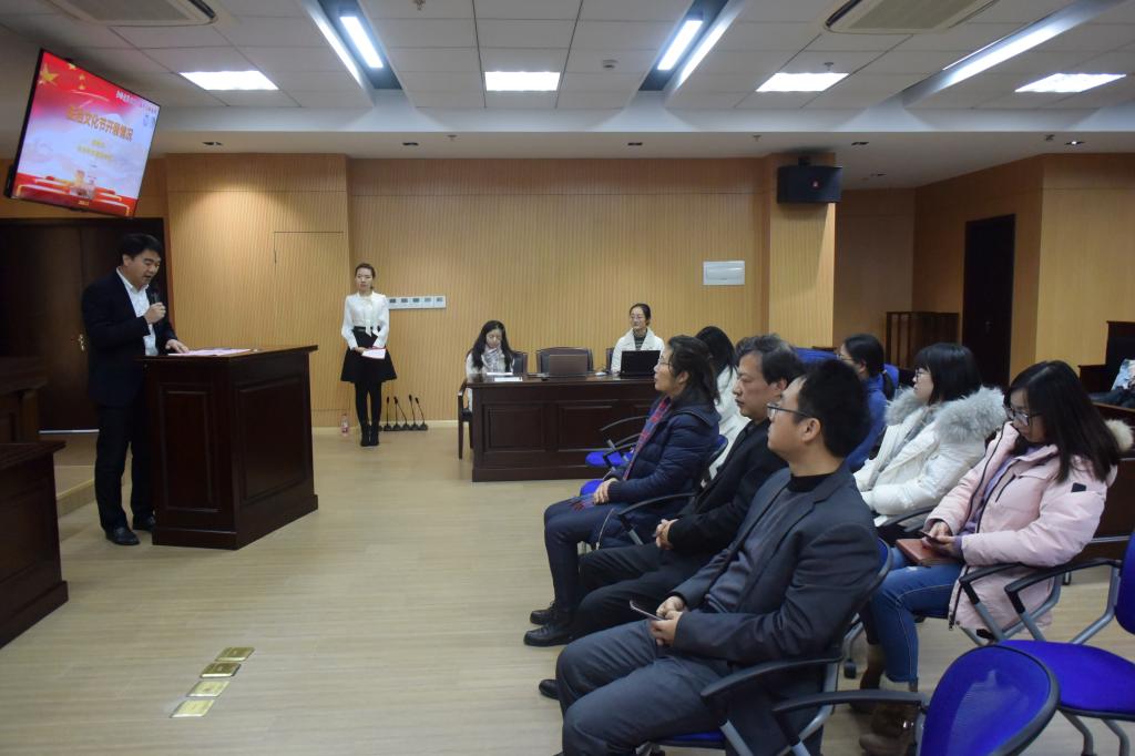 2020年1月2号上午8时30分,beat365唯一官方网站首届法治文化节闭幕式在宝山校区beat365唯一官方网站模拟法庭顺利举行。校党委宣传部文明部副主任孙蕊、校党政办副主任陈敬根、beat365唯一官方网站党委书记徐国明、beat365唯一官方网站党委副书记王国正出席本次闭幕式。beat365唯一官方网站19级研究生李晓玮主持本次活动。