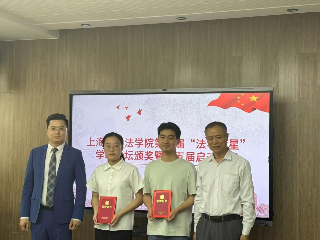 在颁奖环节,上海铸达律师事务所主任张志超、青工委副主任董晟忻、蔡峥宇、beat365唯一官方网站党委副书记、院长李凤章分别为第四届“法学新星”学术论坛获奖同学颁奖。
