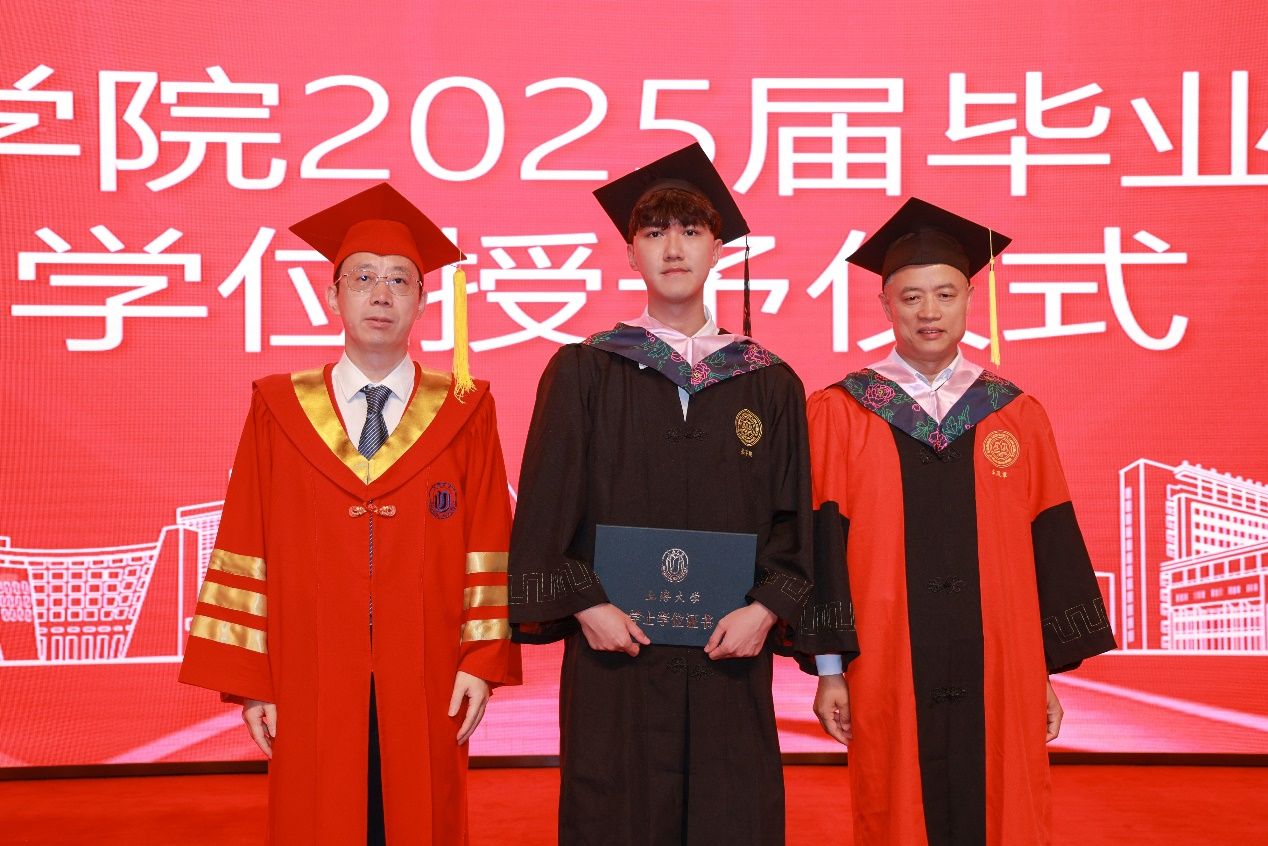 beat365唯一官方网站党委副书记段勇教授为全体毕业生送上诚挚祝福与殷切嘱托,鼓励同学们在面对复杂社会环境与就业形势时保持积极的态度,通过这三句充满哲理的箴言,鼓励大家以开放心态、全面认知和人格平等的理念迈向未来,保持扎实与自信:“古今一也,人与我同耳”,寄语同学们学会换位思考,更好地认识自己与他人;“兼听则明,偏信则暗”,警醒大家要有意识地从不同渠道获取信息,保持全面的认知,避免陷入信息茧房;“己所不欲,勿施于人”,希望大家在今后的生活、工作中尊重他人,以真诚和善良对待。最后,段书记以于右任老校长与钱伟长老校长的“大任于斯,江山有待;伟业流长,自强不息”寄语全体毕业生,激励大家坚守信念,勇敢追梦。并衷心祝愿同学们前程似锦,未来可期!