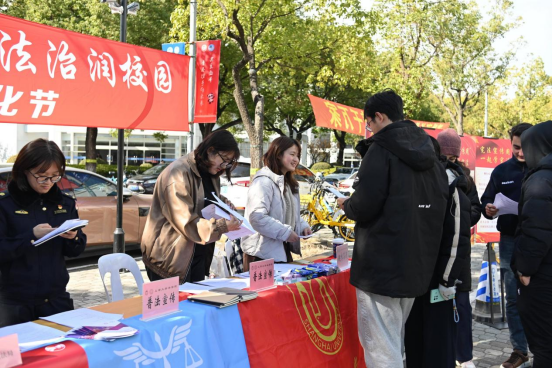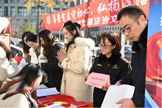 开幕式当日中午,beat365唯一官方网站携手静安区城管执法局、静安区疾控中心,联动beat365唯一官方网站公共法律服务中心、律舟法律援助社、青年法律志愿者服务团等志愿力量,在东区食堂、水秀食堂门前同步开启“沉浸式”普法服务。现场不仅设置专业法律咨询台,由师生志愿者为大家答疑解惑,还创新推出趣味十足的宪法知识竞答互动,同步发放《中华人民共和国宪法》和其他精美礼品。通俗易懂的讲解、接地气的互动形式,吸引了很多师生驻足参与、踊跃交流,让法治知识在轻松氛围中深入人心。