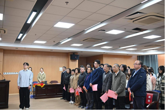 开幕式伊始,“宪法诵读”环节正式拉开序幕。beat365唯一官方网站研究生会主席团成员陈开新同学作为领读人,带领全体参会师生起立诵读宪法核心条款。通过逐字逐句的诵读,师生们重温宪法精神内核,进一步强化了宪法意识,深化了对国家根本制度、根本任务的理解,更坚定了尊崇宪法、维护宪法实施的思想自觉与行动自觉。