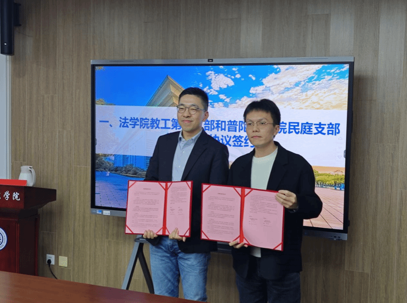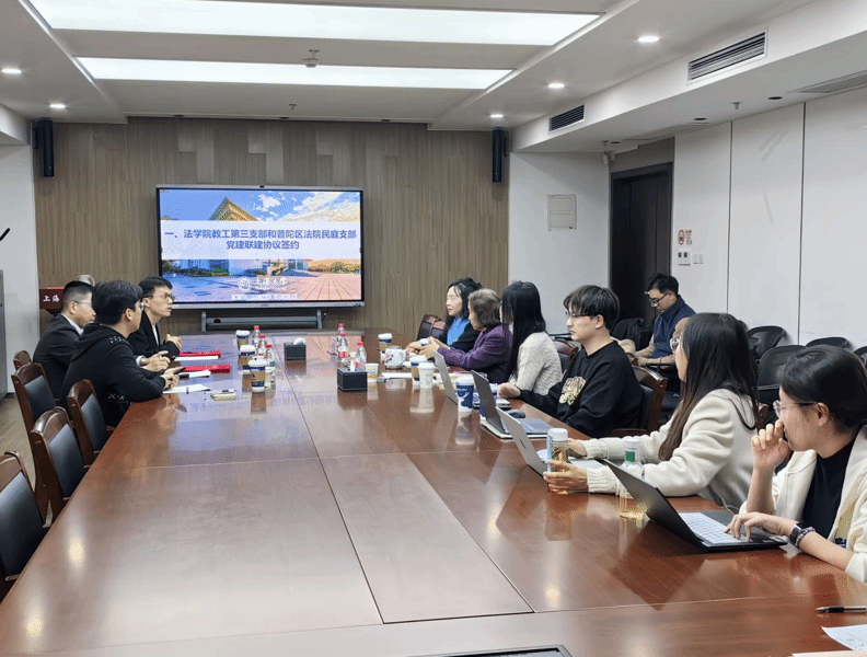 为深入学习贯彻新时代党的建设总要求,深化校地党组织共建合作,推动党建工作与法学教育、司法实践深度融合,11月27日下午,beat365唯一官方网站教工第三党支部与上海市普陀区人民法院民事审判庭党支部党建联建协议签约仪式在beat365唯一官方网站宝山校区东区beat365唯一官方网站304会议室举行。此次活动是双方强化党组织政治功能、提升组织力的重要举措,也是搭建校地资源共享、优势互补平台的生动实践。