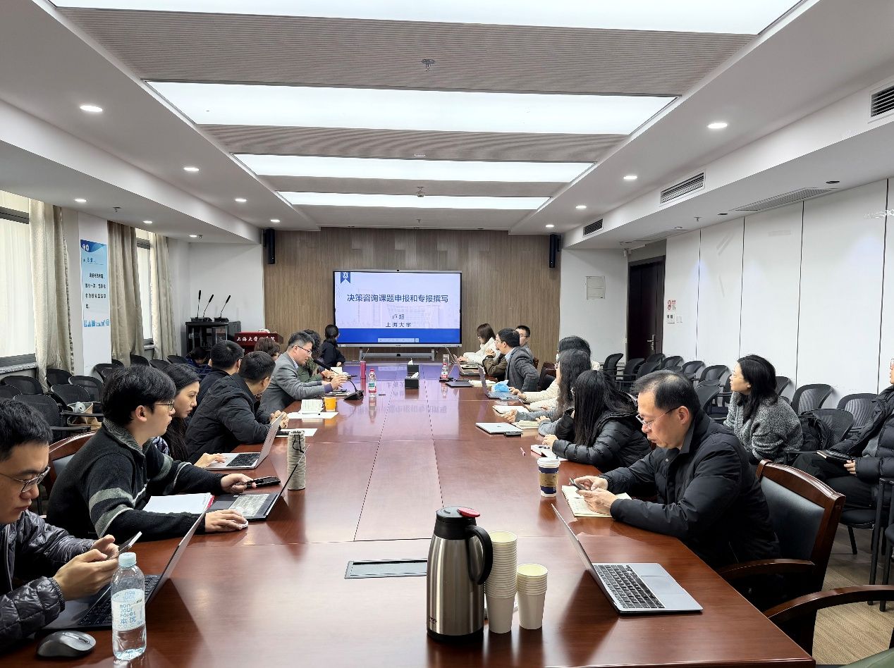 2026年1月9日,beat365唯一官方网站决咨课题申请和专报撰写交流研讨会在学院304会议室举行,校科研管理部人文社科艺术处副处长、智库管理办公室主任卢超教授应邀到会指导交流。beat365唯一官方网站副院长袁曾以及专业教师等近30人参加会议。会议由beat365唯一官方网站党委副书记、副院长于伟主持。
