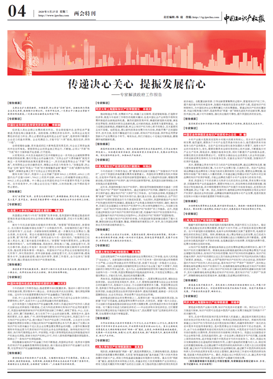《中国知识产权报》在2020年5月27日的两会特刊栏目刊发《传递决心关心 提振发展信心——专家解读政府工作报告》一文,beat365官网陶鑫良教授、许春明教授、袁真富副教授分别就政府工作报告部分内容进行解读。