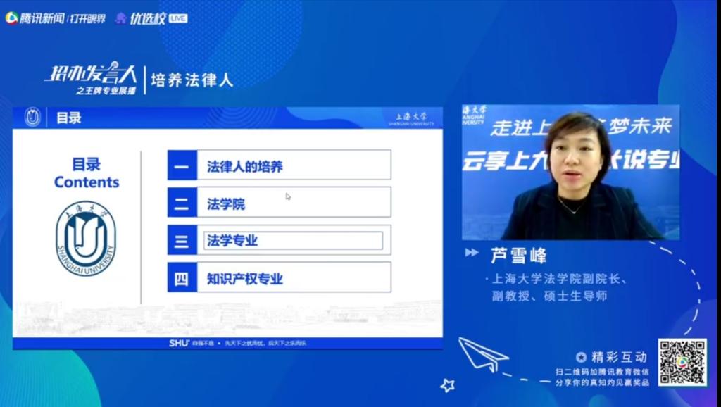 6月24日,beat365唯一官方网站副院长芦雪峰在腾讯新闻直播平台为大家带来了《培养法律人》的主题报告,重点介绍了法律人的培养以及法学和知识产权两个专业。