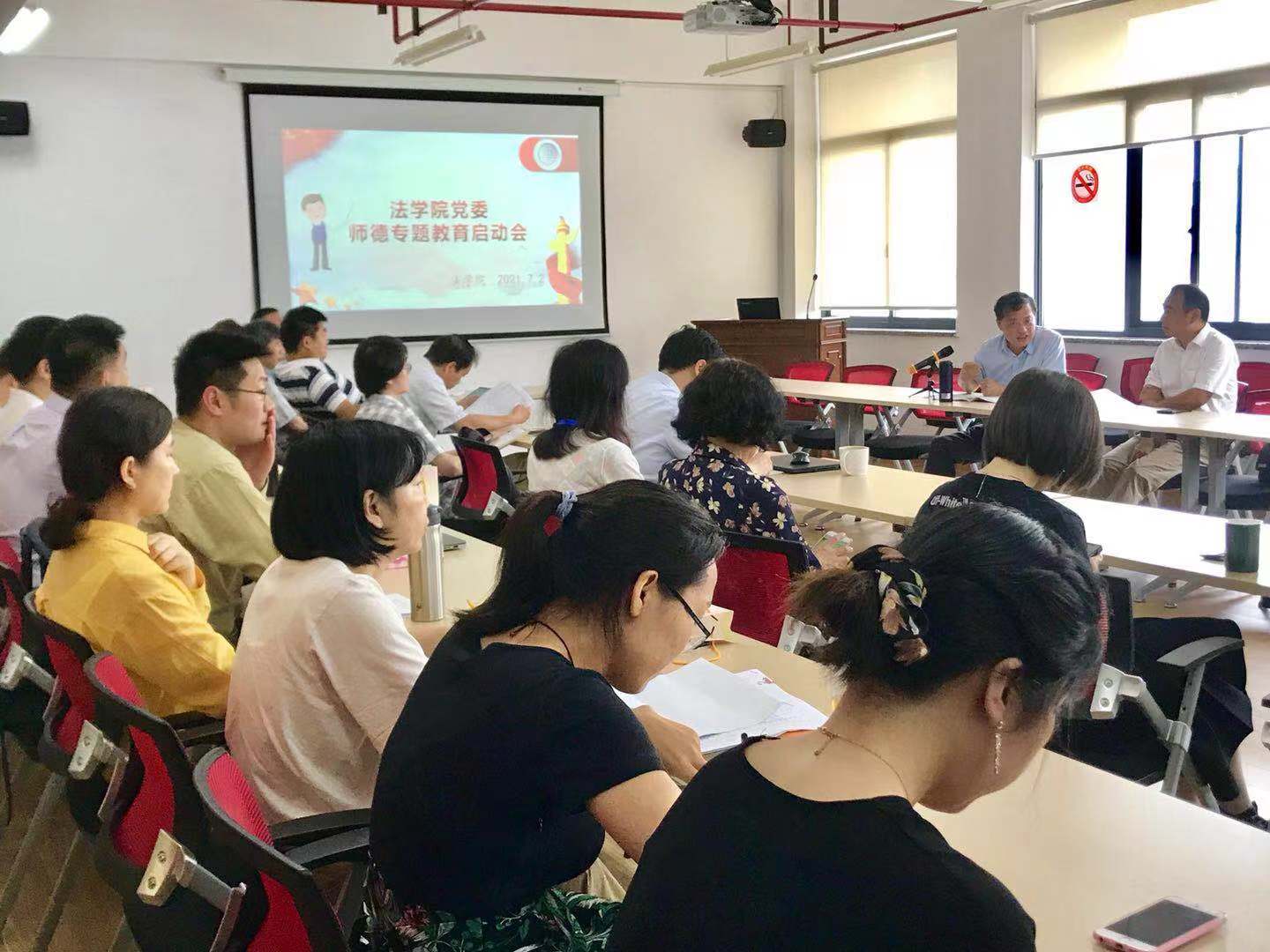 7月2日上午9:00点,beat365唯一官方网站召开师德专题教育启动会暨《习近平总书记关于师德师风的重要论述摘编》学习会。本次会议主要传达了关于师德专题教育的相关文件精神和实施方案,并动员部署学院2021年师德专题教育工作。本次会议由学院党委书记徐国明主持,学院全体教职工悉数到会参加。