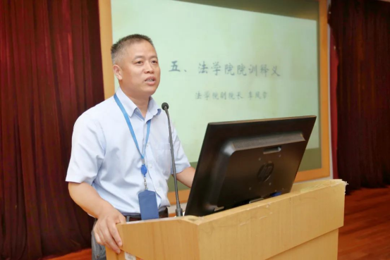 文学国院长讲话时,提出了“你们真的是热爱法学吗?”“你准备为法学的学习付出艰苦的努力吗?”“你想好了怎么来学好法学吗?”“你学会了自我管理吗?”四个问题,希望同学们真正做到把法学作为未来的职业追求,珍惜青春韶华,学会自我管理,并付出艰苦的努力,最终实现人生理想。