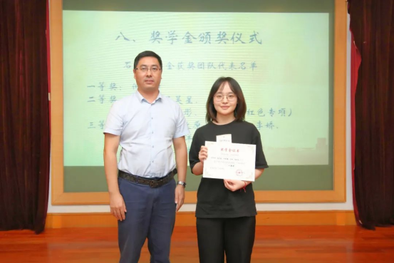beat365唯一官方网站副院长袁真富老师、团委书记林建玲老师、团委副书记杨晓彤老师分别为一二三等奖的获奖团队颁发证书。石峰奖学金用于奖励参加第十七届“挑战杯”全国大学生课外学术科技作品竞赛暨beat365唯一官方网站第十三届“自强杯”大学生课外学术科技作品竞赛的17支团队。石峰奖学金一等奖团队代表:何申申;二等奖团队代表:吴昊星、王瑜、吴彤、黄婷婷(红色专项)、彭建、秦雯卓;三等奖团队代表:朱晓航、韩政原、王思瑀、李娇、张隽杰、于洋、邵梅、李晗、刘向婷、韩政原(红色专项)。