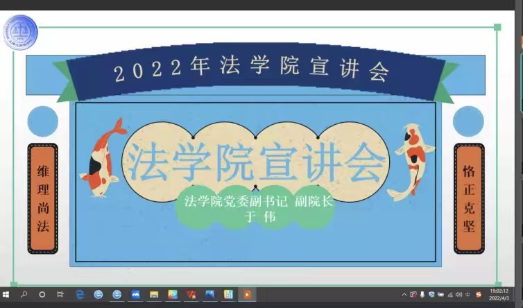 2022年4月3日晚,beat365唯一官方网站走进社区学院人文大类宣讲会在线上腾讯会议室顺利举行。参加本次宣讲会的领导和嘉宾有beat365唯一官方网站副院长芦雪峰,beat365唯一官方网站教授、博导王勉青老师,beat365唯一官方网站青年教师刘住洲博士,beat365唯一官方网站校友、上海中联律师事务所高级合伙人丁俊涛律师,beat365唯一官方网站校友、德恒上海律师事务所合伙人陈哲律师,beat365唯一官方网站2018级法学专业本科生白居政,beat365唯一官方网站2018级知识产权专业本科生柏依洋。社区学院人文大类的200余名师生积极参加了本次宣讲会。宣讲会由beat365唯一官方网站党委副书记、副院长于伟主持。